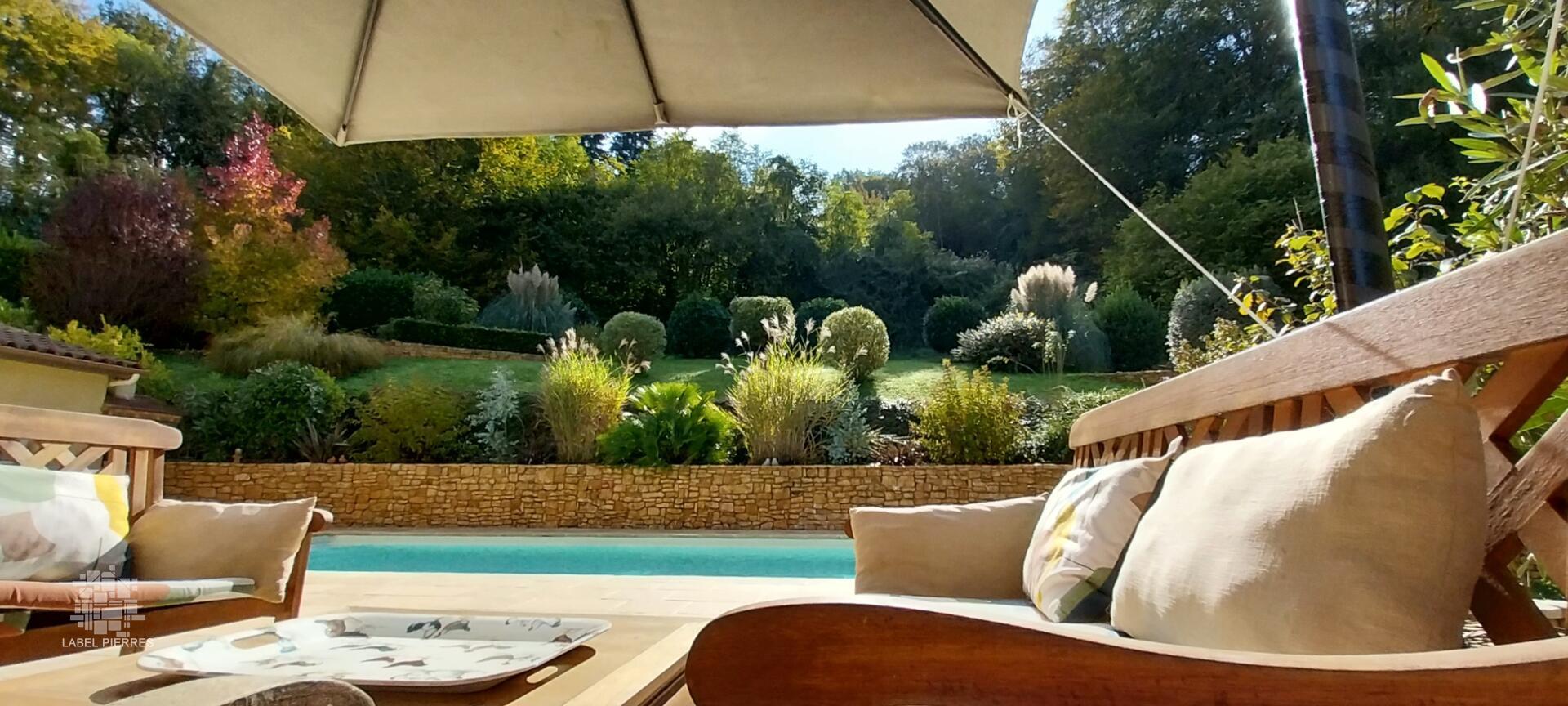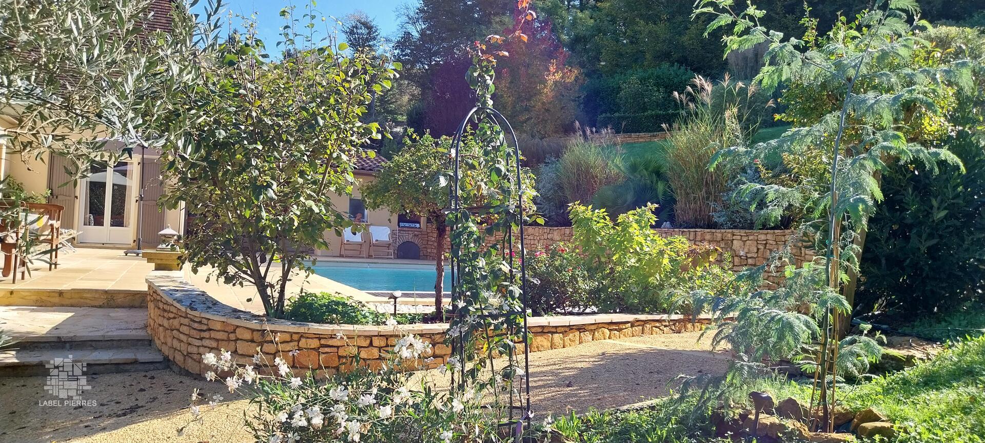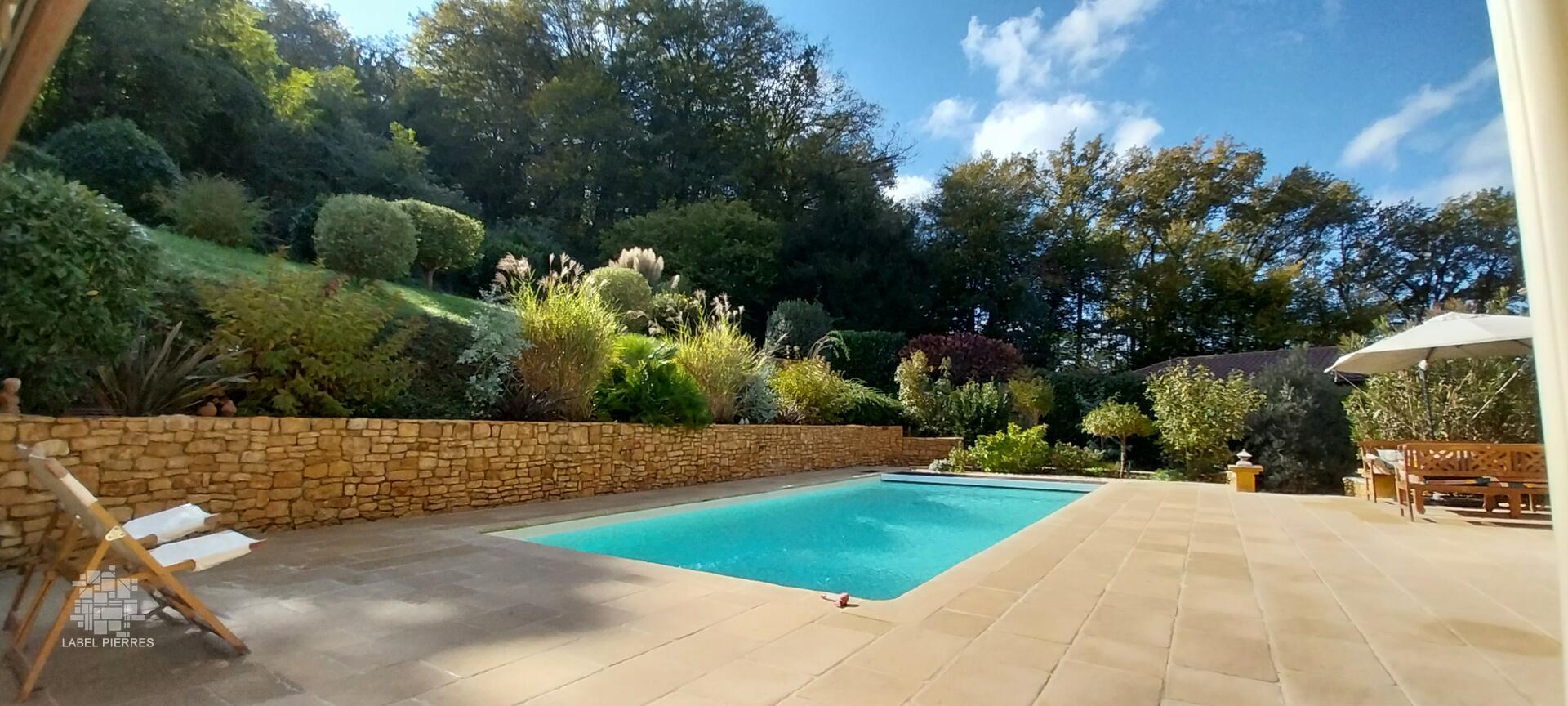 En plein cœur de Sarlat, à deux pas du centre Médiéval et 5 mn à pied des commerces, du cinéma, de la médiathèque des écoles et des collèges, au bout d’une impasse privée dans un écrin de verdure, se trouve une belle Périgourdine contemporaine de 193 m² sur une parcelle de 1900 m² environ de jardin paysager autour d’une grande terrasse orientée sud-ouest avec une piscine de 10 mètres par 5 sans vis-à-vis et dans un calme absolu. Dans la maison de plain-pied, ouverte sur la terrasse, un beau séjour-salon de 47 m² avec baie vitrée, fenêtres traversantes et cheminée-insert ouvert, le tout reliée à une cuisine design séparée par une verrière coulissante et suivi par un corridor qui distribue un bureau et 3 belles chambres dont une suite avec accès à la salle de bain, un dressing et une porte-fenêtre ouverte sur la terrasse. A l’étage, éclairé par 2 fenêtres et 3 velux, une belle suite de 52 m² avec antichambre-salon, salle de bain, toilettes séparées, chambre climatisée vue piscine et jardin arboré. Au sous-sol sur 60 m² s’étendent, une lingerie avec douche, 3 places de garage, 2 caves indépendantes et le local technique piscine. L’endroit unique de par sa situation idéale de maison de campagne en ville, spacieuse et lumineuse, agencée avec gout, au milieu de ce jardin boisé et fleuri parfaitement entretenu, en fait un bien exclusif à découvrir. Les informations sur les risques auxquels ce bien est exposé sont disponibles sur le site Géorisques www.georisques.gouv.fr
