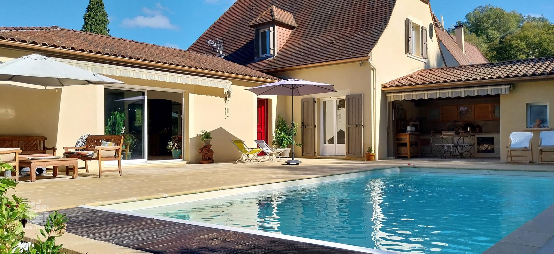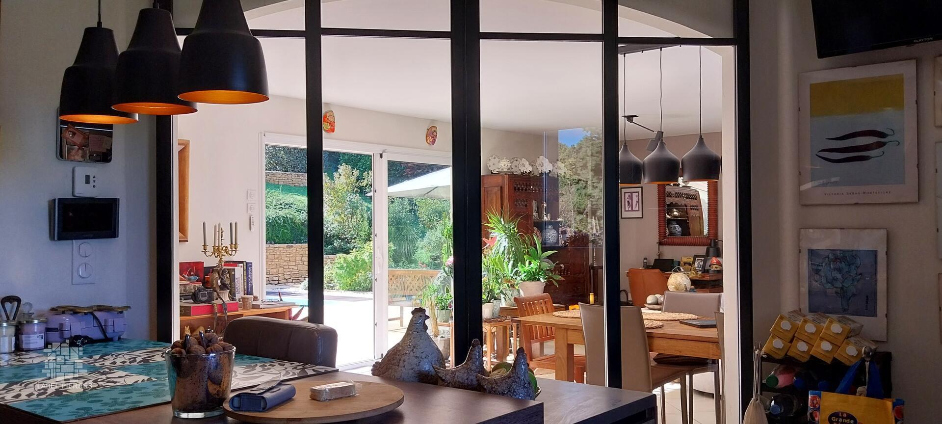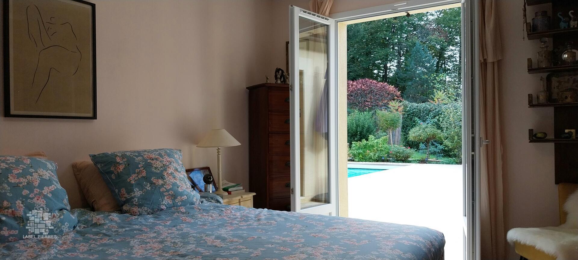 En plein cœur de Sarlat, à deux pas du centre Médiéval et 5 mn à pied des commerces, du cinéma, de la médiathèque des écoles et des collèges, au bout d’une impasse privée dans un écrin de verdure, se trouve une belle Périgourdine contemporaine de 193 m² sur une parcelle de 1900 m² environ de jardin paysager autour d’une grande terrasse orientée sud-ouest avec une piscine de 10 mètres par 5 sans vis-à-vis et dans un calme absolu. Dans la maison de plain-pied, ouverte sur la terrasse, un beau séjour-salon de 47 m² avec baie vitrée, fenêtres traversantes et cheminée-insert ouvert, le tout reliée à une cuisine design séparée par une verrière coulissante et suivi par un corridor qui distribue un bureau et 3 belles chambres dont une suite avec accès à la salle de bain, un dressing et une porte-fenêtre ouverte sur la terrasse. A l’étage, éclairé par 2 fenêtres et 3 velux, une belle suite de 52 m² avec antichambre-salon, salle de bain, toilettes séparées, chambre climatisée vue piscine et jardin arboré. Au sous-sol sur 60 m² s’étendent, une lingerie avec douche, 3 places de garage, 2 caves indépendantes et le local technique piscine. L’endroit unique de par sa situation idéale de maison de campagne en ville, spacieuse et lumineuse, agencée avec gout, au milieu de ce jardin boisé et fleuri parfaitement entretenu, en fait un bien exclusif à découvrir. Les informations sur les risques auxquels ce bien est exposé sont disponibles sur le site Géorisques www.georisques.gouv.fr