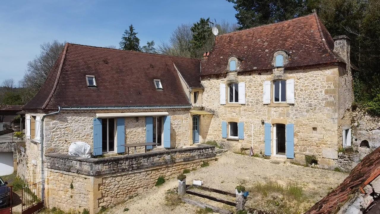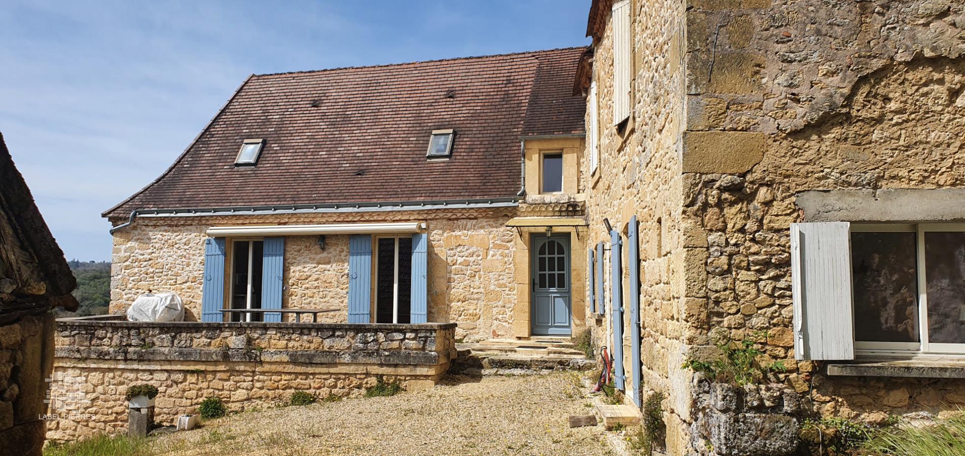 Jolie maison en pierres à finir de restaurer dans un village du Périgord Noir avec grange, jardin et vue dégagée.