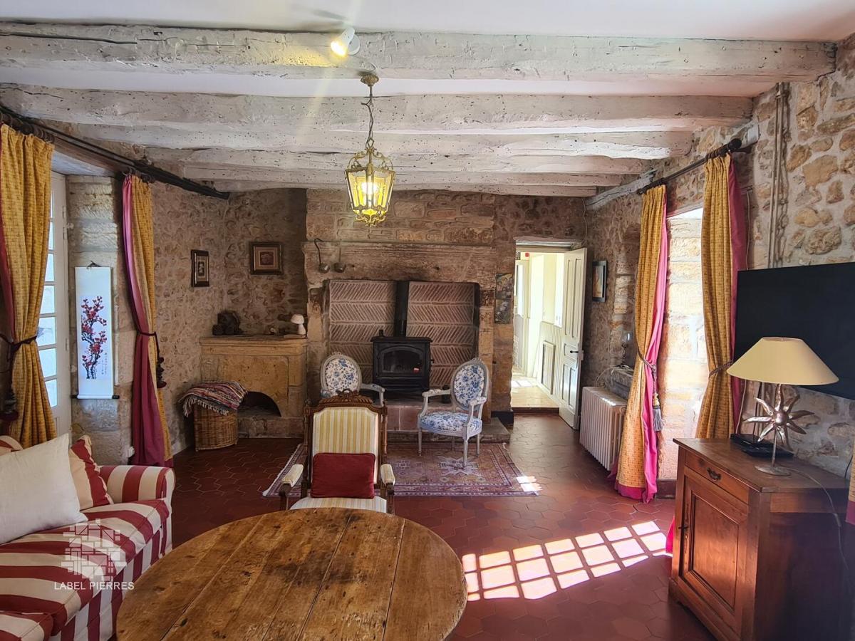 - Séjour de 32m² environ avec belle cheminée en pierre et potager.