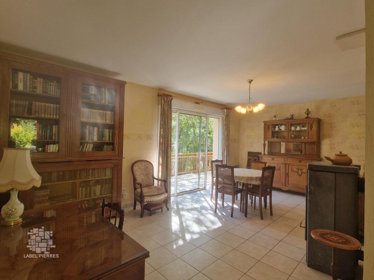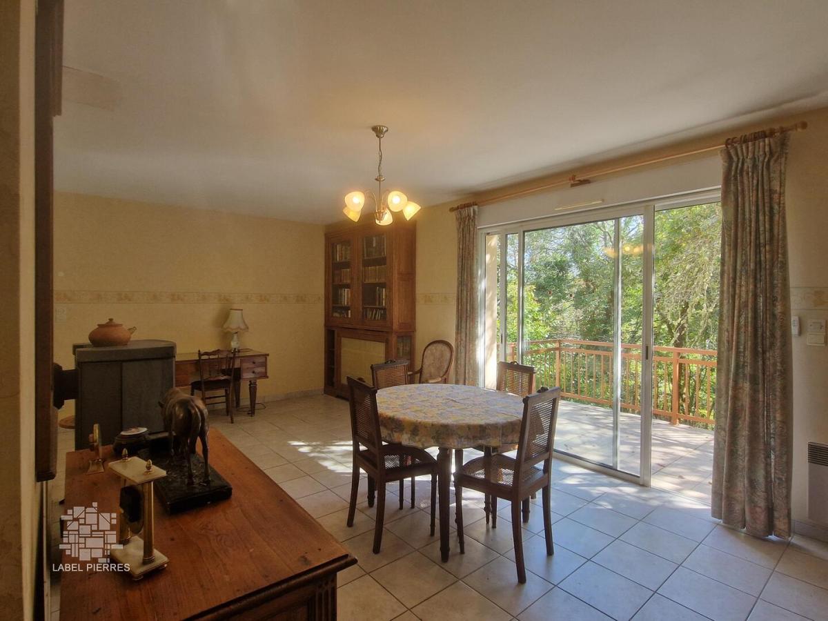 Dans une jolie clairière calme sur les hauteurs des Eyzies, cette maison périgourdine a été construite il y a 25 ans. Elle offre la possibilité de vivre de plain-pied avec une pièce à vivre traversante donnant sur la terrasse, une chambre et une salle d'eau. Deux chambres supplémentaires ainsi qu'un cabinet de toilette sont à l'étage. Un grand sous-sol de 106m² ainsi qu'un garage attenant pourront servir de stockage. Chauffage électrique et bois (poêle finlandais en pierre de lave). DPE D. Assainissement individuel. Commerces à 5 minutes. Les informations sur les risques auxquels ce bien est exposé sont disponibles sur le site Géorisques : www.georisques.gouv.fr