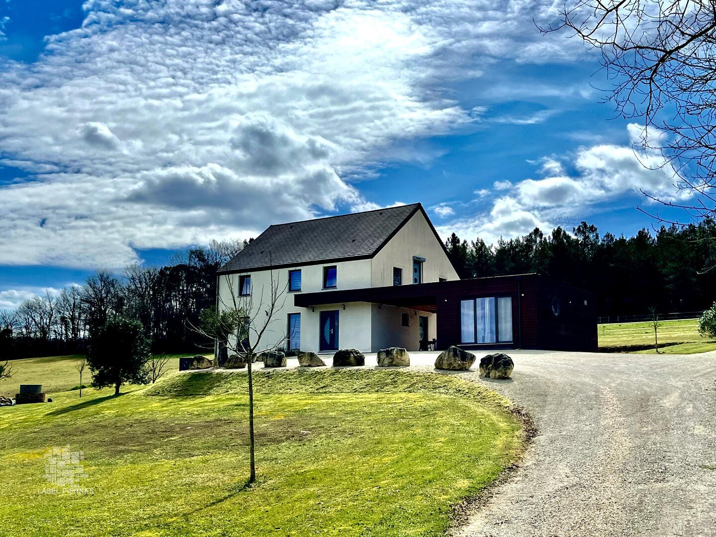 En campagne dans la vallée de la Vézère, non isolée, belle maison contemporaine avec studio indépendant, ensemble construit avec des matériaux de qualité, situé au calme, à quelques kilomètres de Montignac.
