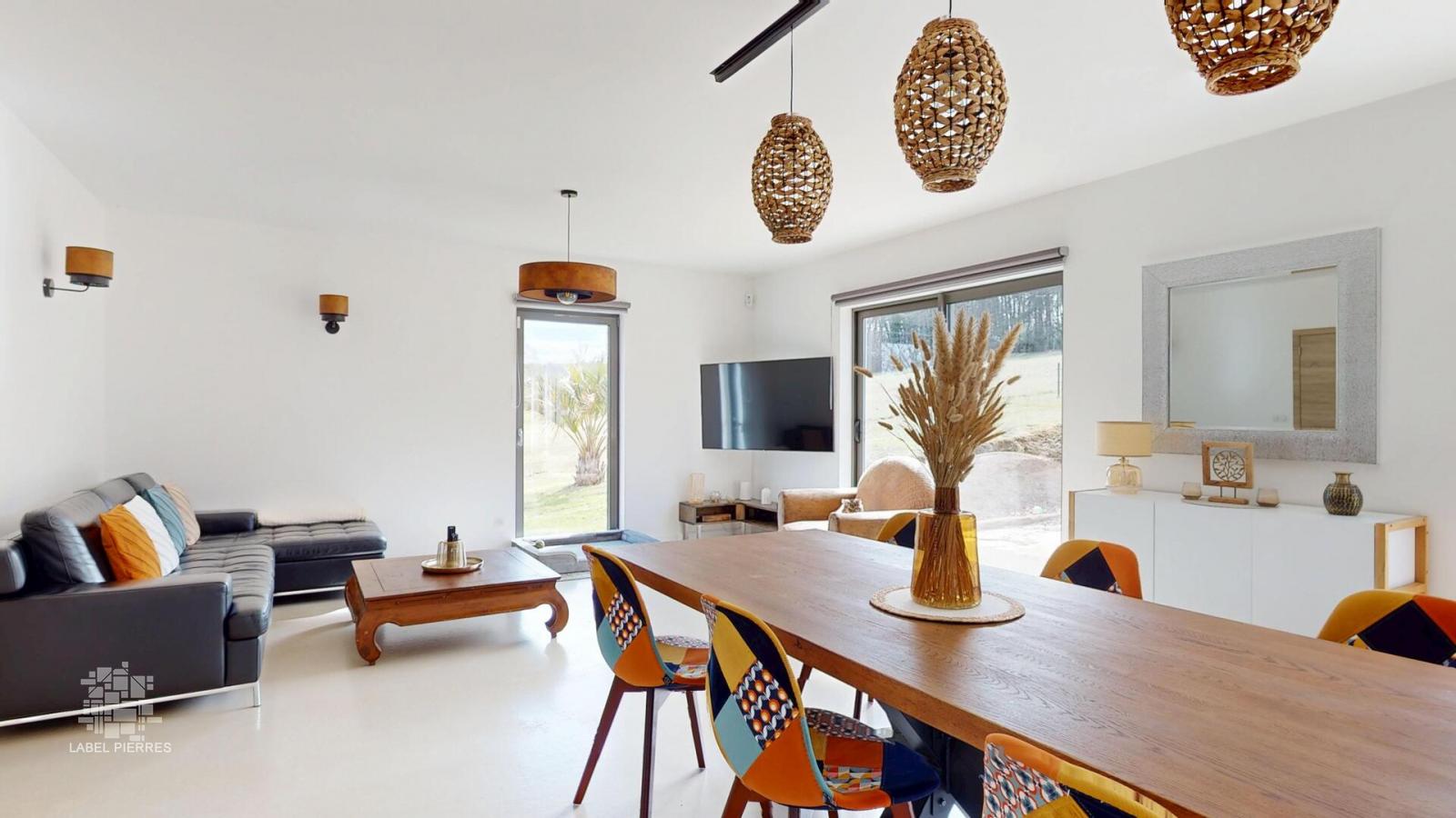 Dans la vallée de la Vézère, à environ 5 kilomètres du village de Montignac, en campagne, au calme mais non isolée, venez découvrir cette impeccable maison contemporaine achevée en 2022 et son studio indépendant. Construit avec des matériaux de qualité dans un soucis de confort et modernité, la maison, classe énergétique A, développe environ 179 m2 habitables dont une très belle pièce de vie baignée de lumière, 3 ou 4 chambres selon usage, salle de bains, dressing… Attenant à la maison via une grande terrasse couverte, le studio indépendant de plain pied d’environ 28 m2 sera idéal pour recevoir famille et amis, ou pour un petit gîte / chambre d’hôtes. Les informations sur les risques auxquels ce bien est exposé sont disponibles sur le site Géorisques: www.georisques.gouv.fr