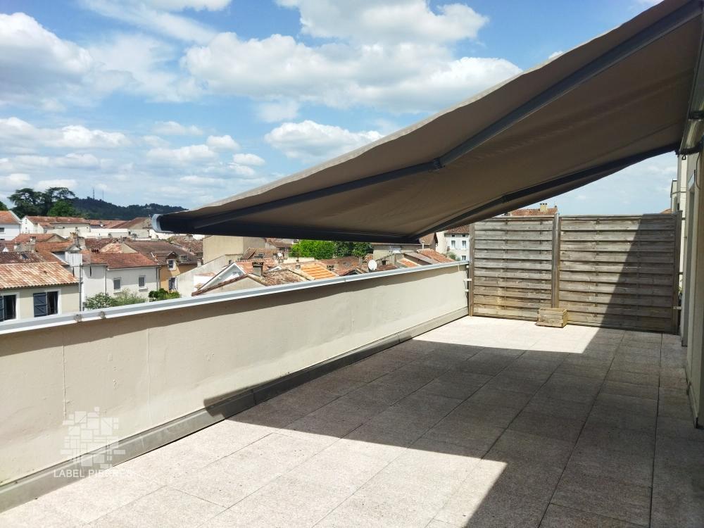 Cahors Appartement centre-ville au 3éme étage avec ascenseur, garage et terrasse d'environ 70 m². Entrée, couloir, séjour, wc, salle d'eau (italienne) 2 chambres, cuisine aménagée donnant sur la terrasse avec une jolie vue sans vis à vis. Fenêtres bois simple vitrage. Volets alu électriques. Garage au sous-sol avec portail automatique, cave. Chauffage central au gaz de ville, climatisation réversible. Tout à l'égout. Les informations sur les risques auxquels ce bien est exposé sont disponibles sur le site Géorisques www.georisques.gouv.fr