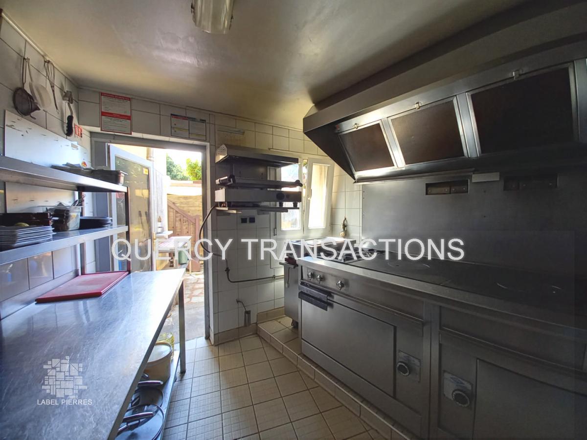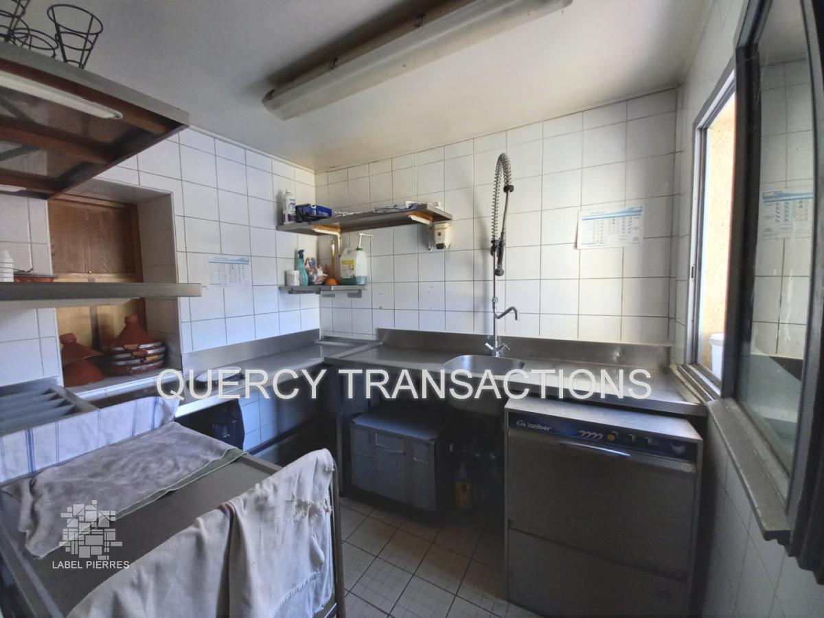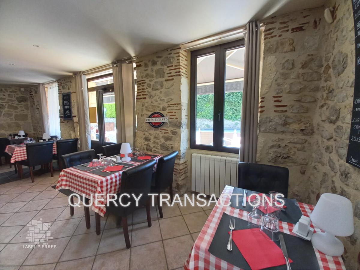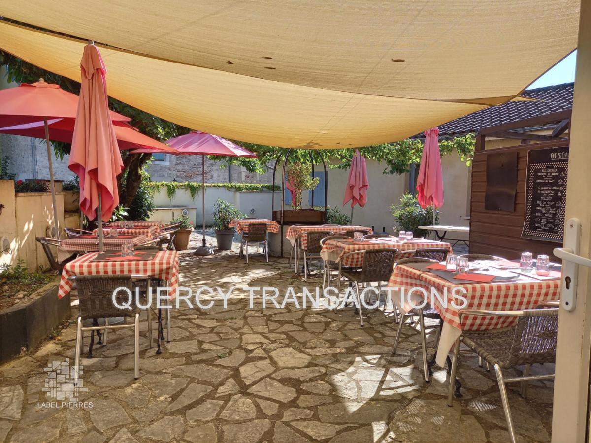 A Vendre fonds de commerce en activité, restaurant, bar avec appartement de fonction compris dans le bail ( T3). Restaurant bien équipé et meublé (intérieur et extérieur), cheminée, bar, et tout l'équipement salle et cuisine. Licence IV.Deux salles (environ 100m²) et cour ombragée.wc aux normes handicap. Restaurant en activité depuis de nombreuses années, en proximité d'un circuit touristique et de la rivière, tout en étant au calme et sans nuisance. Possibilité d'acheter aussi les murs de cette maison de village, en pierre, avec terrasse, cour, petites dépendances servant de réserve. Loyer d'environ 1000€ mensuel, appartement inclus. Bail commercial 3/6/9. Assainissement tout à l'égout. A 20 mn à l'ouest de Cahors. Ce lieu apprécié et charmant accueille sa clientèle toute l'année, au coin du feu ou en terrasse. Les informations sur les risques auxquels ce bien est exposé sont disponibles sur le site Géorisques www.georisques.gouv.fr