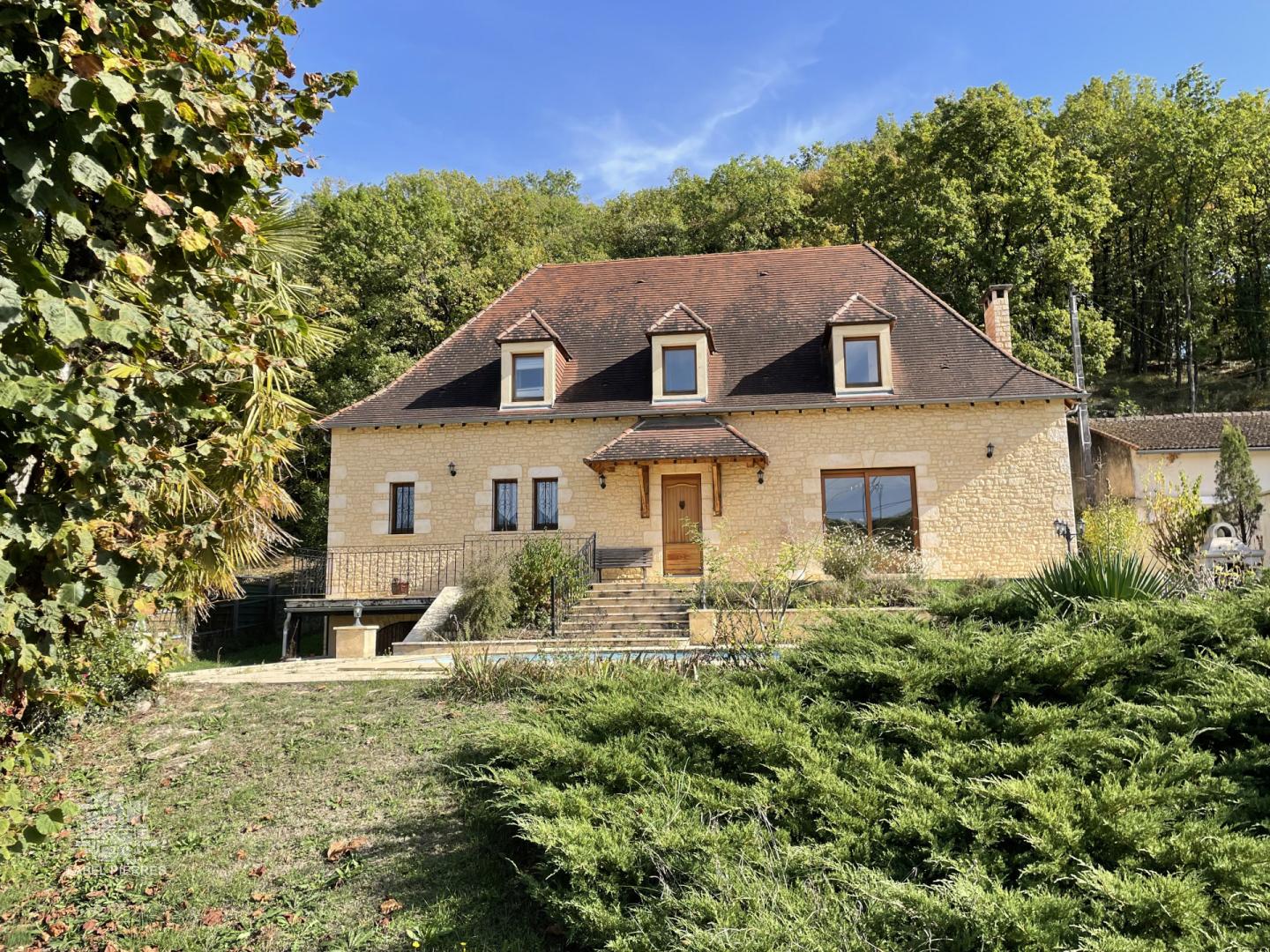 En Périgord Noir, à 10 minutes de Montignac et proche du typique petit village de CONDAT-SUR-VEZERE, cette vaste maison périgourdine entièrement refaite il y a un peu plus de 10 ans, développe aujourd'hui environ 280 m² habitables dont une magnifique pièce à vivre de 120 m², avec beaucoup d'ouverture. On trouve aussi en rdc, une grande chambre avec salle d'eau et dressing. A l'étage, un palier/couloir dessert 4 grandes chambres et deux salles d'eau. La maison est bien orientée. Grande terrasse sud-ouest ainsi qu'une terrasse ombragée sur l'arrière. La piscine est en cours de réfection. Chauffage par géothermie (puits). Sous-sol. Jardin devant la maison et terrain boisé d'environ 6000 m² sur l'arrière de la maison. Les informations sur les risques auxquels ce bien est exposé sont disponibles sur le site Géorisques: www.georisques.gouv.fr