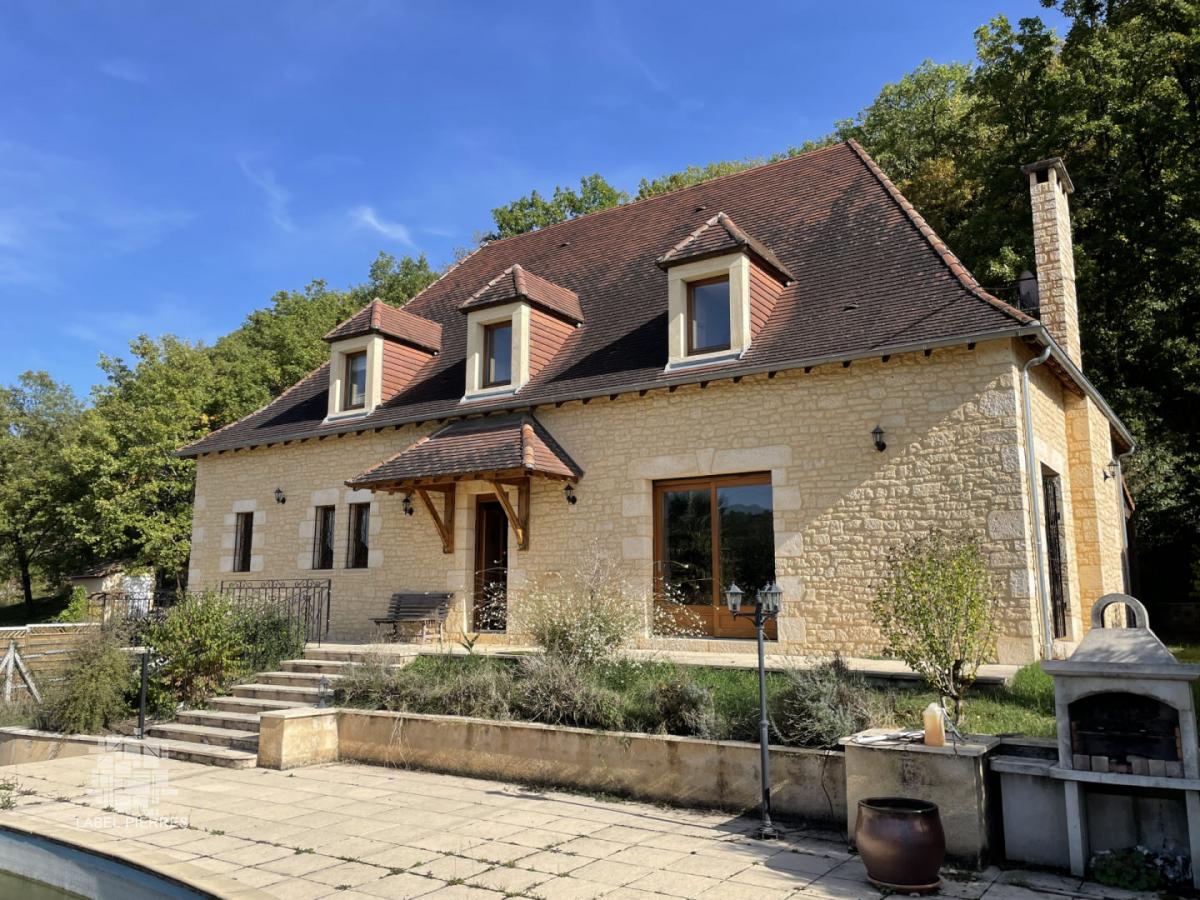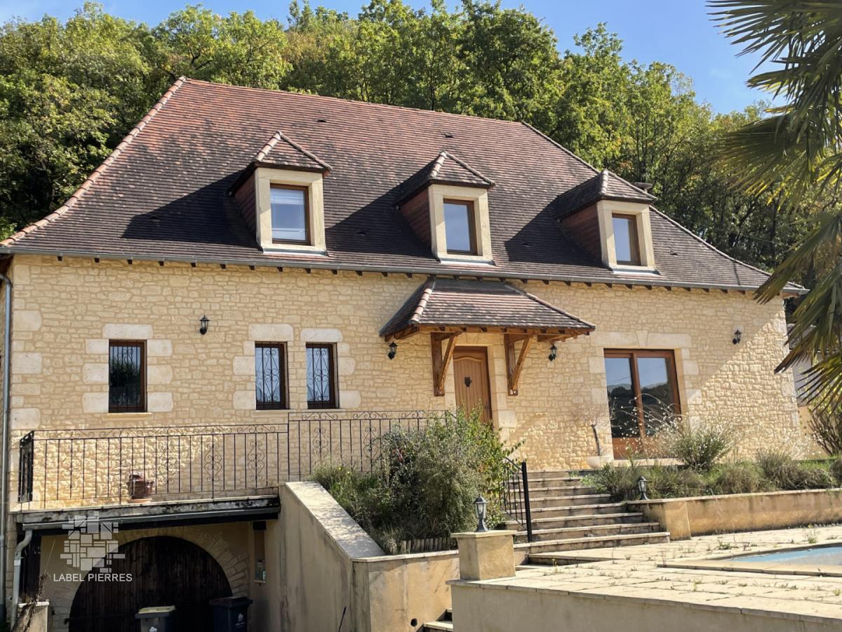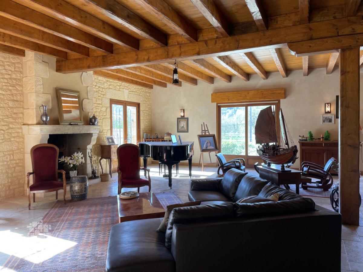 En Périgord Noir, grande maison périgourdine récente d'environ 280 m² habitables avec une grande pièce de vie de 120 m². Piscine.