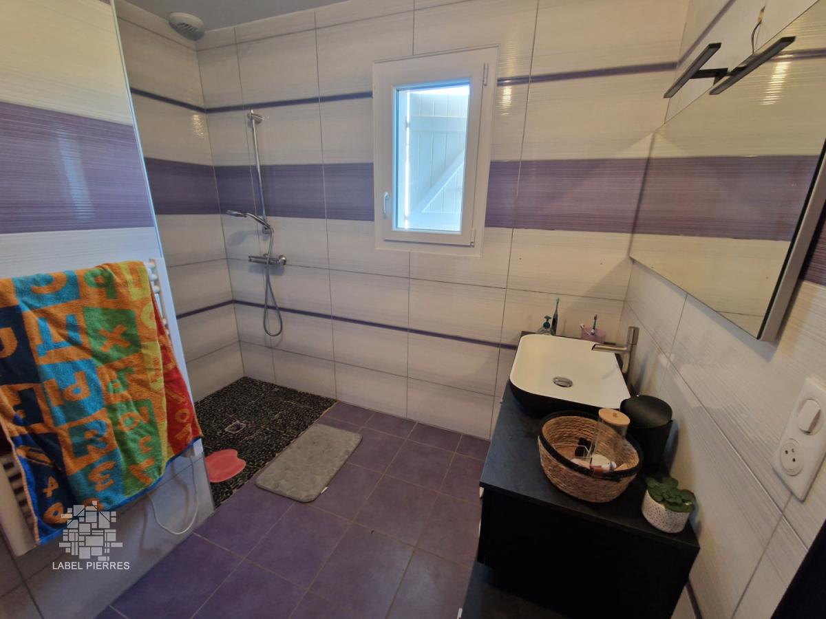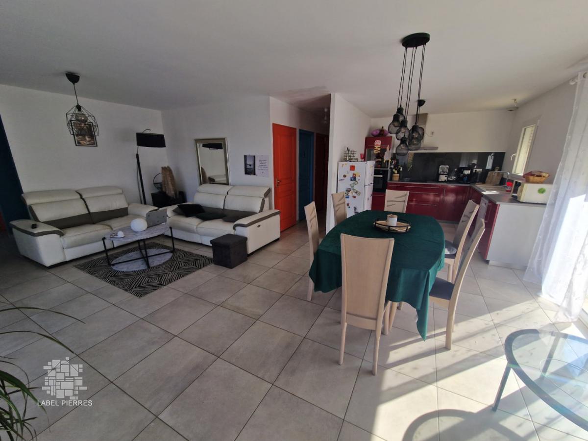 Cette maison contemporaine de 2015 classée en A est bâtie en plain-pied sur un terrain de 1360 m² situé dans un quartier résidentiel et desservi par la navette gratuite. Un portail électrique donne accès au terrain entièrement clôturé. La surface habitables est actuellement d'environ 95 m² qui peut être étendue de 40 m² en aménageant les combles. Entrée sur dégagement et la grande pièce de vie de 53 m² avec salon/salle à manger/cuisine équipée. Couloir d'accès aux deux chambres, à la salle d'eau et WC indépendant. Un cellier et un local technique complète le tout. Un double garage de 43 m² est attenant à la maison. Le chauffage au sol est alimenté par une pompe à chaleur air/eau. Les informations sur les risques auxquels ce bien est exposé sont disponibles sur le site Géorisques: www.georisques.gouv.fr