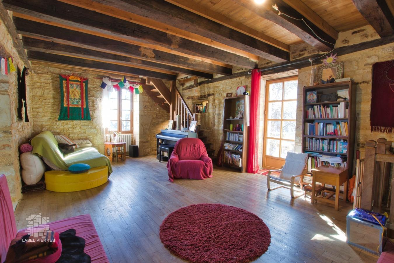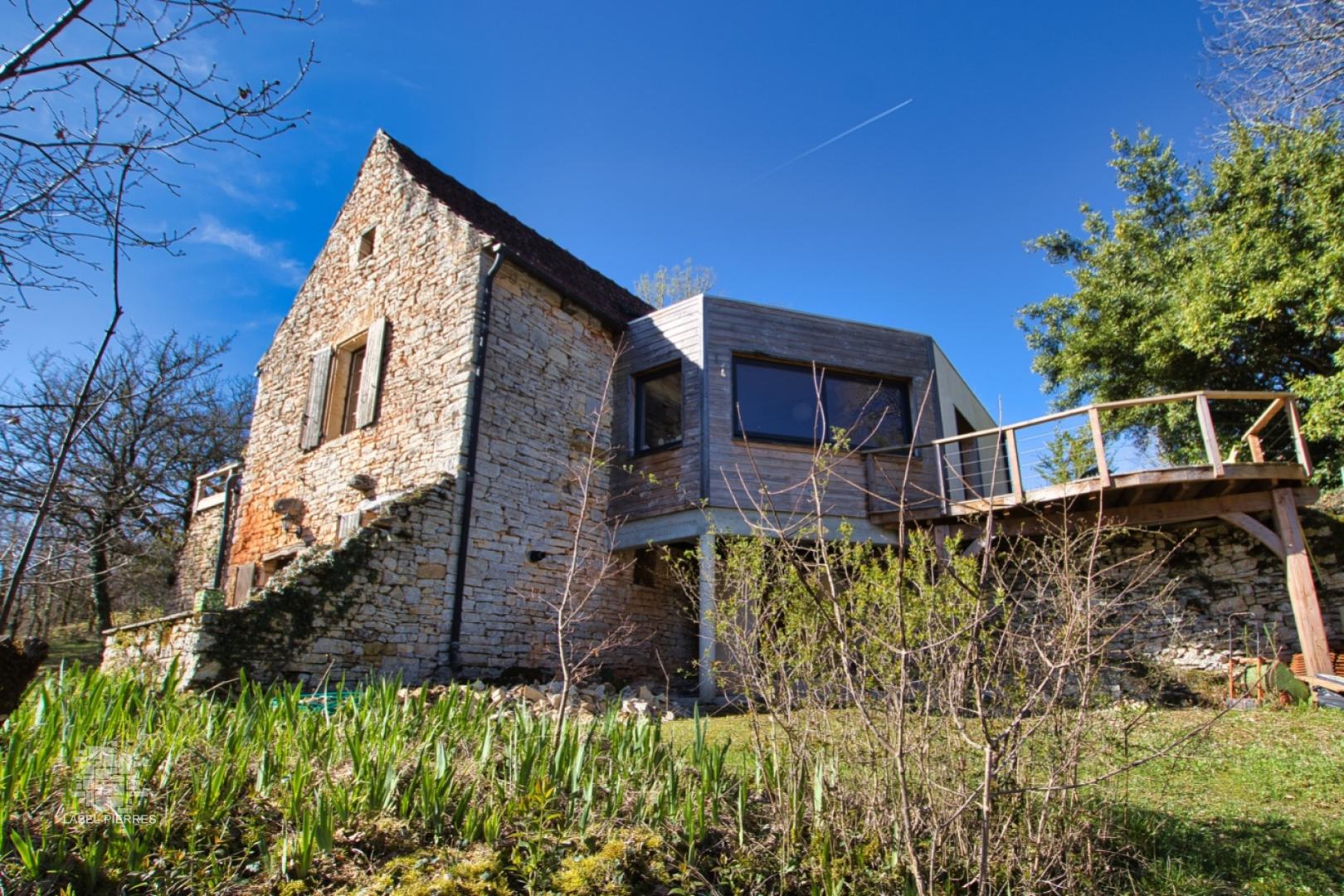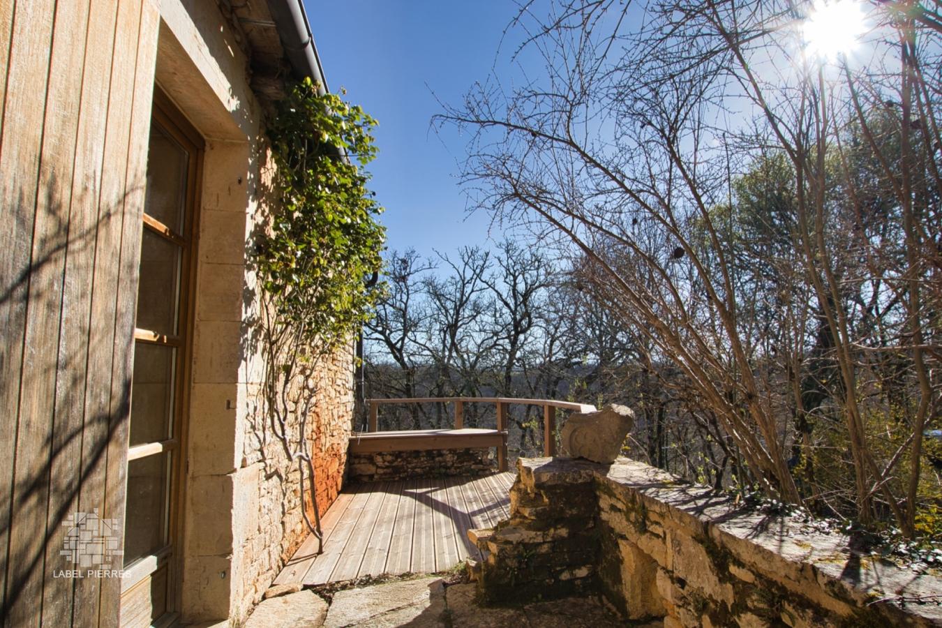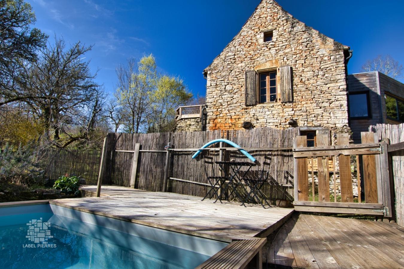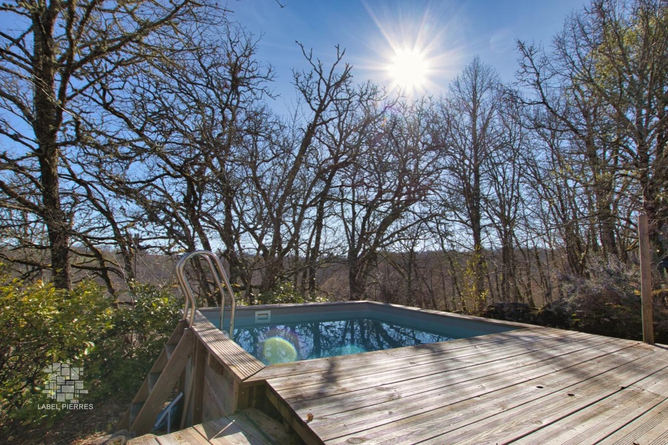 Secteur Bouzic- Aux confins du Lot et de la Dordogne, dans un environnement calme mais non isolé, sans nuisances avec vue dégagée, agréable maison en pierre avec extension bois très bien intégrée comprenant un salon avec canton, un wc, une cuisine avec salle à manger donnant sur une terrasse suspendue, deux chambres : l'une mansardée au 1er étage et l'autre en rez-de-jardin avec salle de bains. Le jardin de 1595 m2 est agrémenté d'une piscine hors-sol et de divers espaces de vie très bucoliques Double vitrage, chauffage bois et fuel, fosse septique. Visite virtuelle sur demande Les informations sur les risques auxquels ce bien est exposé sont disponibles sur le site Géorisques: www.georisques.gouv.fr