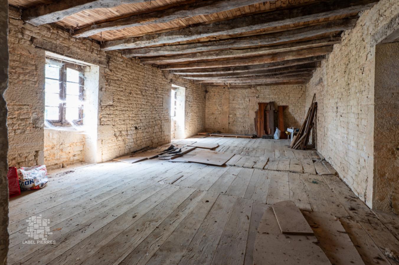 - Maison attenante à rénover sur 3 niveaux : RDC / 42 m² avec cheminée cantou, Etage 1/ 45 m² avec cheminée, Etage 2/ 36 m²