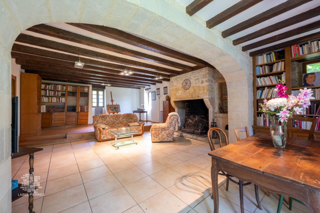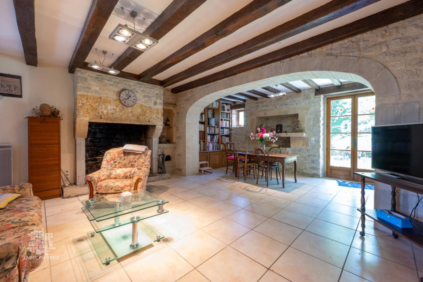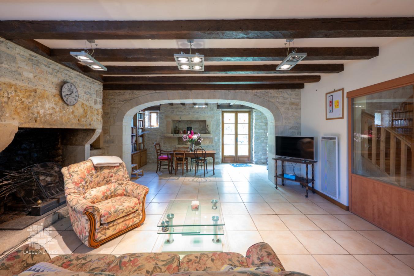 - Séjour avec cheminée cantou foyer ouvert de 48,7 m² - vieil évier en pierre