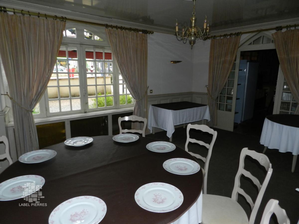 (Lot n°1) Immeuble ancien en pierres érigé sur caves à usage de chaufferie et divers espaces de stockage (60 m²) ; en rez-de-chaussée : couloir desservant : pièce « accueil » avec cheminée (28.3 m²), labo / cuisine / plonge (62.4 m² une partie dans extension façade sud), sanitaires (5.5 m²), 2 salles de restaurant (41.8 et 38.5 m²), couloir (8m²), terrasse (sur voie publique) ; au 1er étage : palier, couloir et dégagement (23.4 m²) desservant 4 chambres (101 à 104) respectivement 13.5, 11.3, 10.7 et 10.7 m² toutes équipées de salle de bains / WC (4.3, 4.5, 4.3 et 4.4 m²), bureau (6.5 m²) et salle de formation (38.6 m²) ; au second : palier, couloir et dégagement (13.4 m²) desservant 5 chambres (201 à 205) respectivement 15.3, 11.7, 9.8, 9.2 et 12.4 m² toutes équipées de salles de bains / WC (5.4, 5.7, 4.4, 4.1 et 4.5 m²) ; au 3ème étage : palier (0.6 m²) desservant 6 chambres (301à 306) respectivement 7.6, 7.9, 11.5, 9.9, 9.5, 9.6 m², les chambres 301 et 306 équipées d’une salle d’eau / WC (2.3 et 2.9 m²), les 4 autres de salles de bains / WC (3, 4.7, 4.8 et 3.3 m²), lingerie (4.9 m²). Au-dessus : comble en partie aménageable. L’immeuble est actuellement exploité en hôtel / restaurant. Le bâtiment, à la qualité architecturale indéniable, est en bon état de gros œuvre (la couverture, en tuiles plates anciennes, mérite néanmoins un suivi), le second œuvre est globalement en état d’usage ainsi que les revêtements murs et sols. L’immeuble est équipé d’un ascenseur desservant les 3 niveaux principaux. (Lot n°2) Ensemble immobilier ancien en pierres composé d’un immeuble à usage d’habitation mitoyen sur deux côtés (dont une mitoyenneté avec le lot N° 1) et d’une grange non attenante et mitoyenne sur deux côtés sur cour sur façade nord. En rez-de-chaussée : bar (24.3 m²), terrasse sur voie publique ; au 1er étage : couloir et dégagement (4 m²) desservant salon avec cheminée (24.7 m²), cuisine (7.2 m²) ; en ½ niveau : WC + lave-mains (1.5 m²) ; au second : palier et dégagement (5.3 m²) desservant une chambre (20.5 m²) et une salle de bains (5.6 m²) ; au 3ème étage mansardé : palier (2.2 m²) desservant une pièce à vivre avec kitchenette ( 20.1 m²), une chambre (9.5 m²), une salle de bains (3.3 m²) et un WC (1.5 m²). Dépendance sur cour : grange de 2 X 51.7 m². Les informations sur les risques auxquels ce bien est exposé sont disponibles sur le site Géorisques: www.georisques.gouv.fr