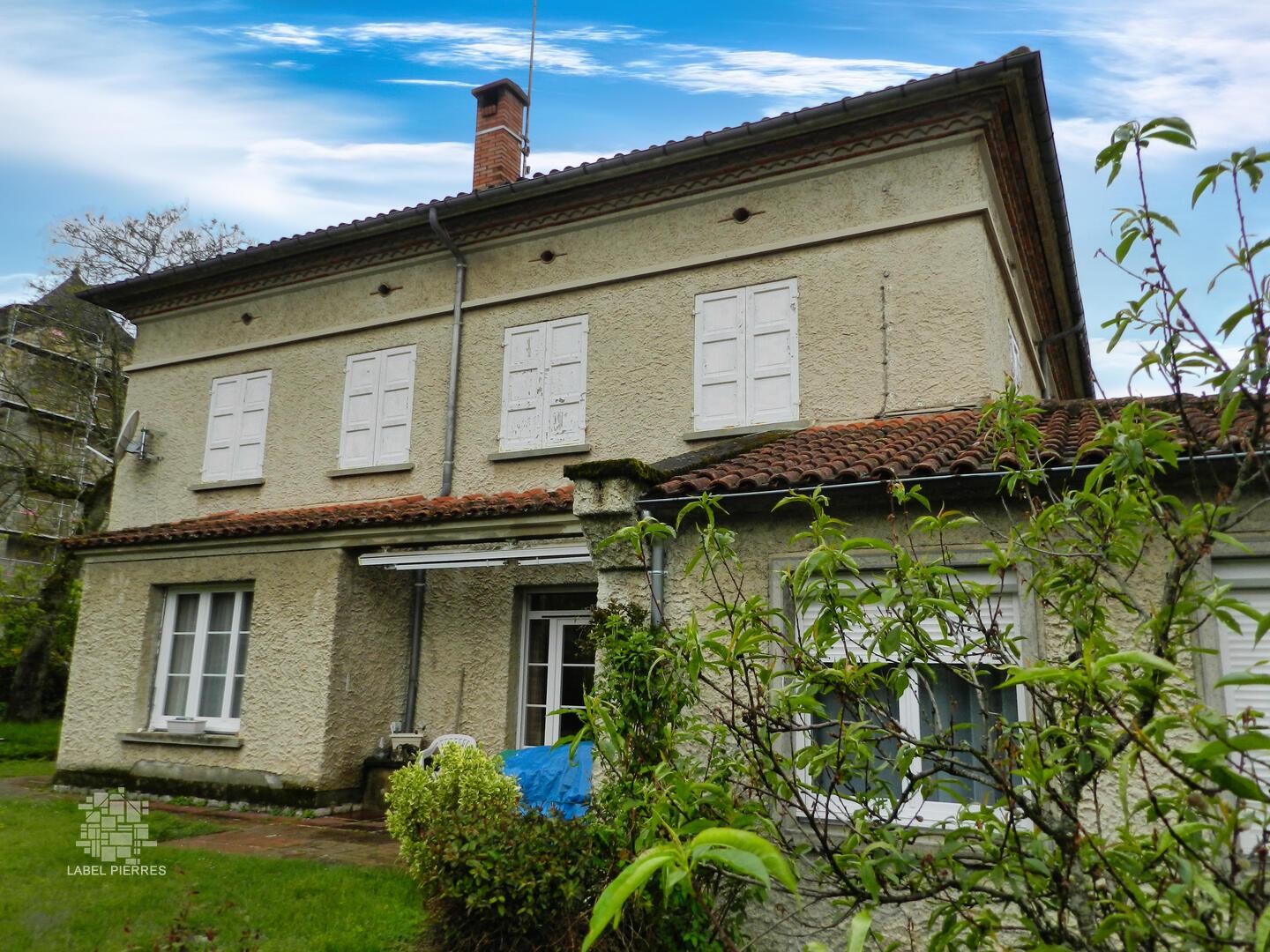Maison d'habitation de 1956 bâtie en pierres sous crépi, érigée sur sous-sol semi enterré et vide sanitaire avec surélévation sur deux niveaux + combles. En rez-de-chaussée : garage avec porte séquentielle automatique, buanderie, caves et chaufferie; en rez-de-jardin : entrée, couloir et dégagement desservant salon / salle à manger, cuisine indépendante, aménagée et équipée, une chambre, deux bureaux, une salle d’eau / WC et un WC avec lave-mains; au 1er étage : palier, couloir et dégagement avec rangements desservant 4 chambres un point d’eau (lavabo), un bureau, une salle de bain (bain + douche) et un WC. Au-dessus, comble perdu (faible hauteur sous charpente) à usage de stockage. La maison est implantée sur un terrain plat, clos et paysagé de 820 m². En état correct de gros œuvre, la maison nécessite des travaux d’isolation (absence totale d’isolation en toiture), de rénovation des menuiseries du R2 et un bon rafraîchissement des revêtements murs et sols. Surface habitable et volumes confortables. Cheminée foyer ouvert, citerne de récupération des eaux de pluie. Les informations sur les risques auxquels ce bien est exposé sont disponibles sur le site Géorisques : www.georisques.gouv.fr