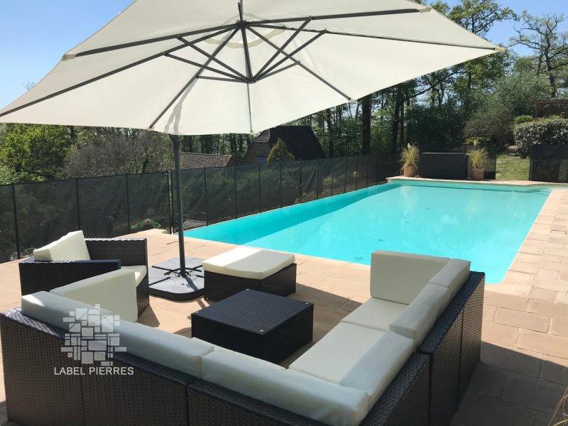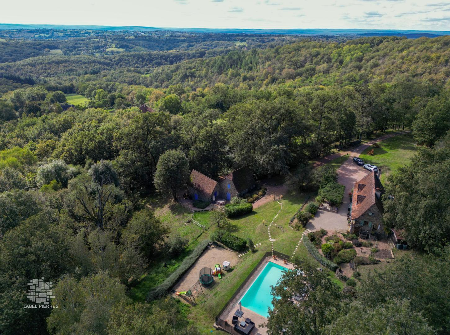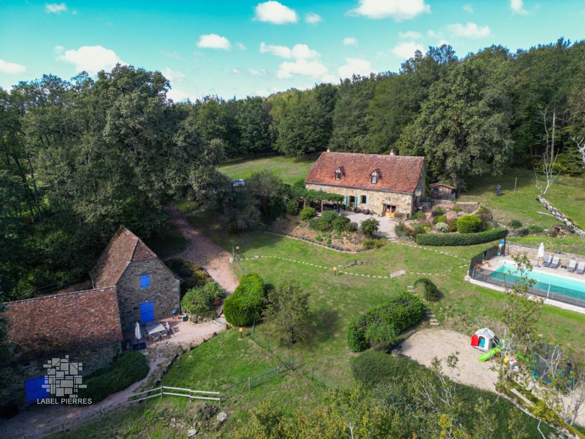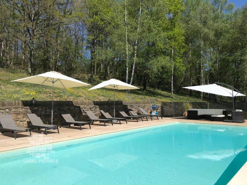 SECTEUR FIGEAC - Coup de coeur ! Au calme sur 2ha, en situation indépendante avec vue dominante sur une belle campagne, cette Propriété de charme en pierre avec piscine à débordement se compose d'une ravissante Maison principale accompagnée de 2 habitats - 230 m² habitables confortables et fonctionnels aménagés avec goût et respect de leur caractère authentique. Le bien s'adapte parfaitement à une activité d'accueil. La Maison. RDC. Entrée de 2 m², séjour de 38 m² avec cheminée (poêle), couloir de 4,6 m², cuisine de 13,3 m², chaufferie cellier de 5,4 m², wc avec lave-mains de 2 m², belle terrasse ombragée de 28 m². Etage. Dégagement de 2 m², 3 chambres de 15 m², 10 m² et 13 m² avec bureau en mezzanine de 6 m² ( sortie extérieure directe), salle de bains - bains et douche - de 11 m². Chauffage par pompe à chaleur et bois (poêle). Double vitrage. Fosse septique. Raccordement à la fibre. Eclairage extérieur télécommandé. Les dépendances. Maison 1.RDC. Séjour cuisine de 28 m² avec placards (2,8 m²). Etage. dégagement de 1,6 m², 2 chambres de 10,8 et 10,3 m², 2 salles d'eau wc de 4,6 m² et 4,3 m². Maison 2 attenante. RDC. Séjour de 15 m², niveau inférieur : dégagement de 1,8 m², 2 chambres de 9,6 m² et 9,3 m², 2 salles d'eau de 3,5 m² et 6,7 m² avec wc. Chauffage électrique. Double vitrage. Fosse septique. Abri bois à usage de buanderie de 4,8 m². Annexe en en bois à usage de bureau indépendant de 13 m². Piscine 11 x 5 à débordement - traitement par bioUV - sécurisée - liner armé Les informations sur les risques auxquels ce bien est exposé sont disponibles sur le site Géorisques www.georisques.gouv.fr