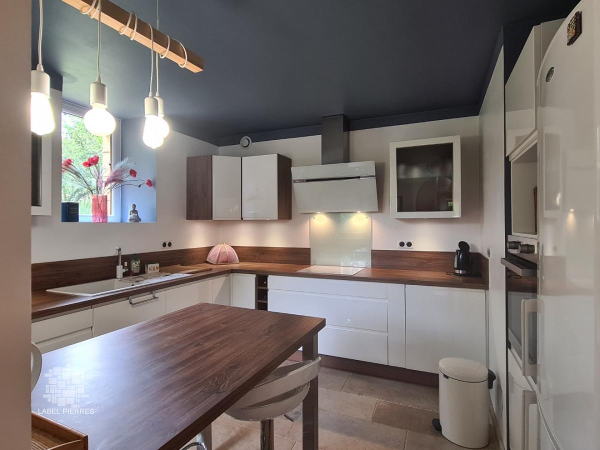 A quelques kilomètres des Eyzies, en position dominante, cette maison en pierres est située dans un cadre enchanteur. Le jardin bucolique, les différentes terrasses et la piscine en bois ne pourront que vous faire profiter des belles journées ensoleillées. La maison de 115 m² habitables, entièrement refaite avec beaucoup de goût et des choix de qualité, offre une salle à manger avec poêle à granulés, une cuisine, un salon et un wc au rez-de-chaussée, au 1er étage une grande chambre de 16,50 m², deux salles d'eau et une chambre en enfilade avec bureau et bibliothèque, et enfin au 2ème étage deux chambres mansardées dont une pour enfant. Verrière, petite dépendance en pierre et chalet à usage d'atelier complètent l'ensemble. Coup de coeur assuré pour les amoureux des jardins en quête de calme et de charme ! Maison vendue meublée. Les informations sur les risques auxquels ce bien est exposé sont disponibles sur le site Géorisques: www.georisques.gouv.fr