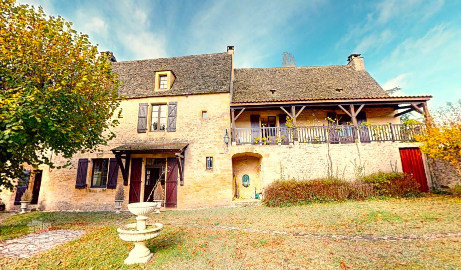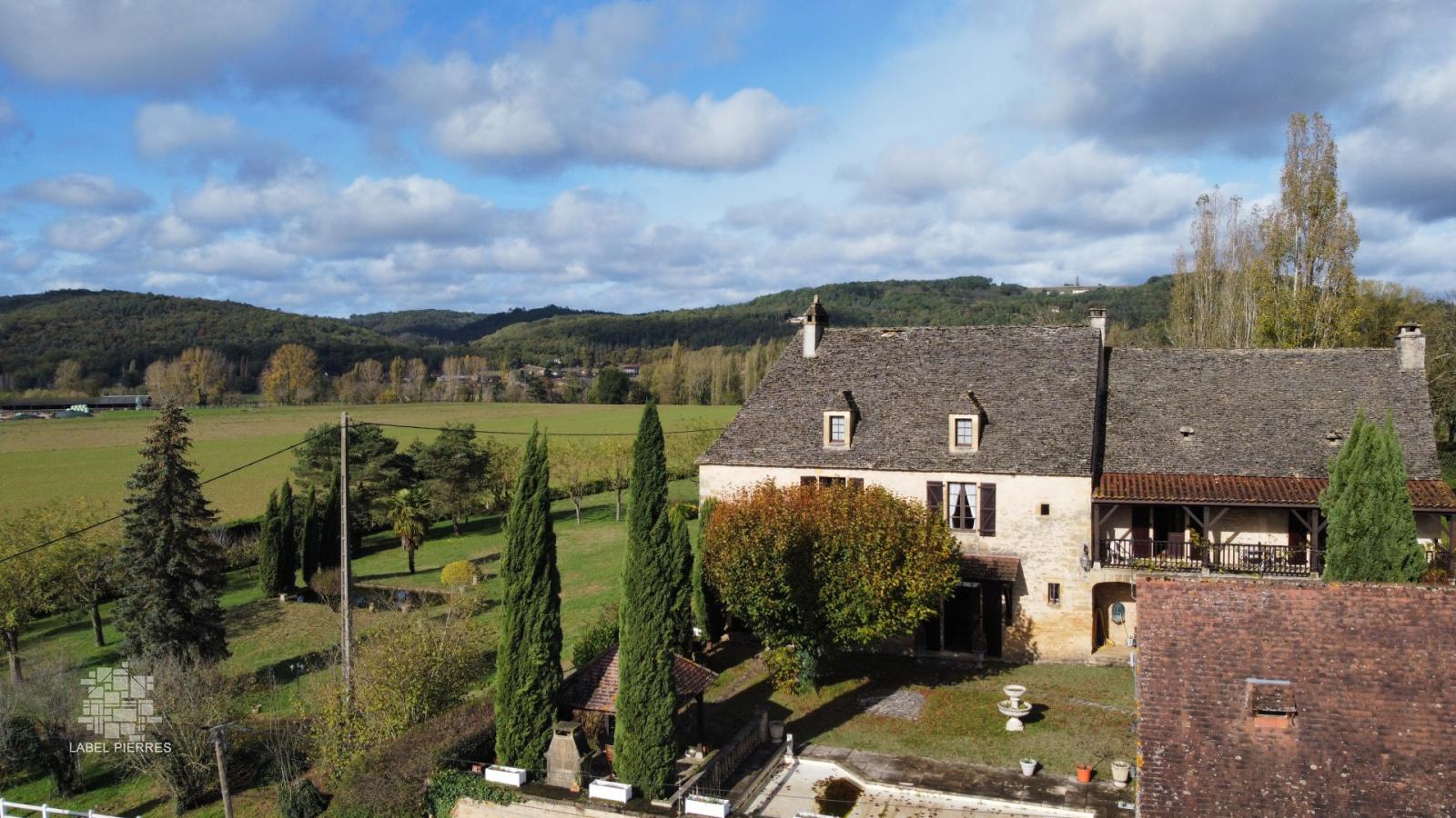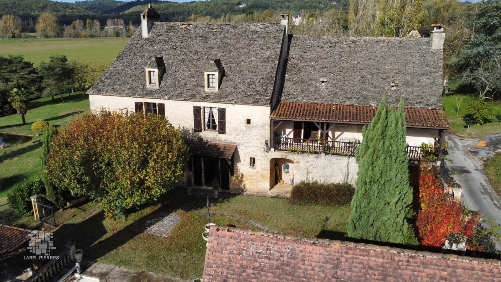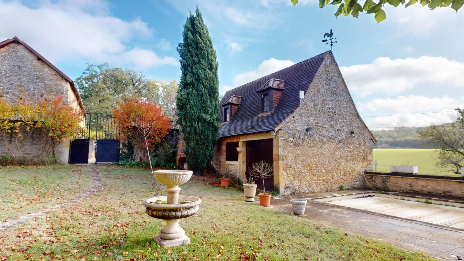 Rare. En Périgord Noir, à quelques pas de la grotte originale de Lascaux et à cinq minutes à peine du village de Montignac et de ses commerces et animations, dans un très bel environnement avec vue sur la campagne, cette magnifique propriété en pierre et lauze ravira tous les amateurs de bâti ancien. La maison d'habitation (285 m2 habitables sur trois niveaux), se distingue par une grande pièce à vivre avec cheminée et escalier en pierre au rez-de-chaussée et de nombreuses chambres et salles d'eau aux niveaux supérieurs. La propriété dispose de nombreuses dépendances (atelier avec petit studio à l'étage, garage fermé et appenti pour au moins deux véhicules, cuisine d'été, four à pain, cabane en pierre, terrasse couverte), d'une piscine et d'un très beau bassin bordé de quelques ifs. L'ensemble, en très bon état, pourra éventuellement faire l'objet de travaux intérieurs mais l'emplacement comme la qualité de la construction font de cet ensemble une propriété unique sur plus de 8000 m2 de terrain clos. Les informations sur les risques auxquels ce bien est exposé sont disponibles sur le site Géorisques: www.georisques.gouv.fr