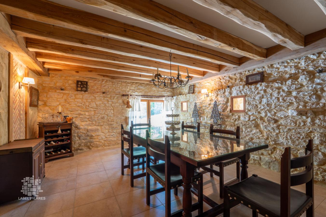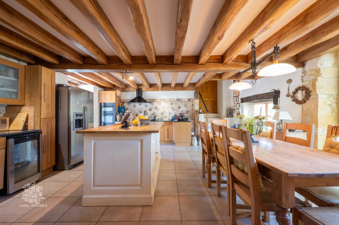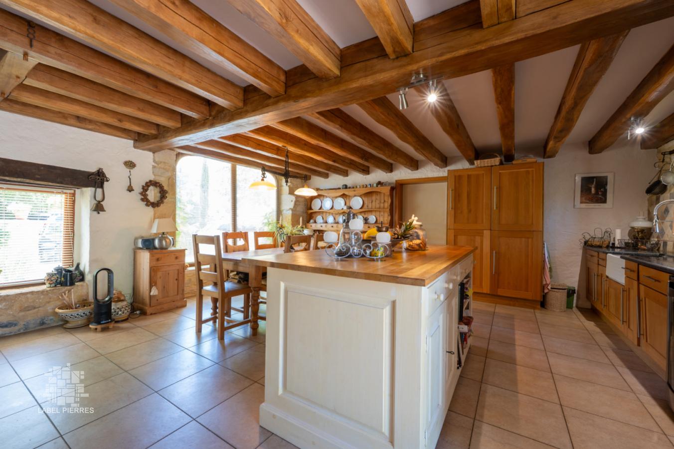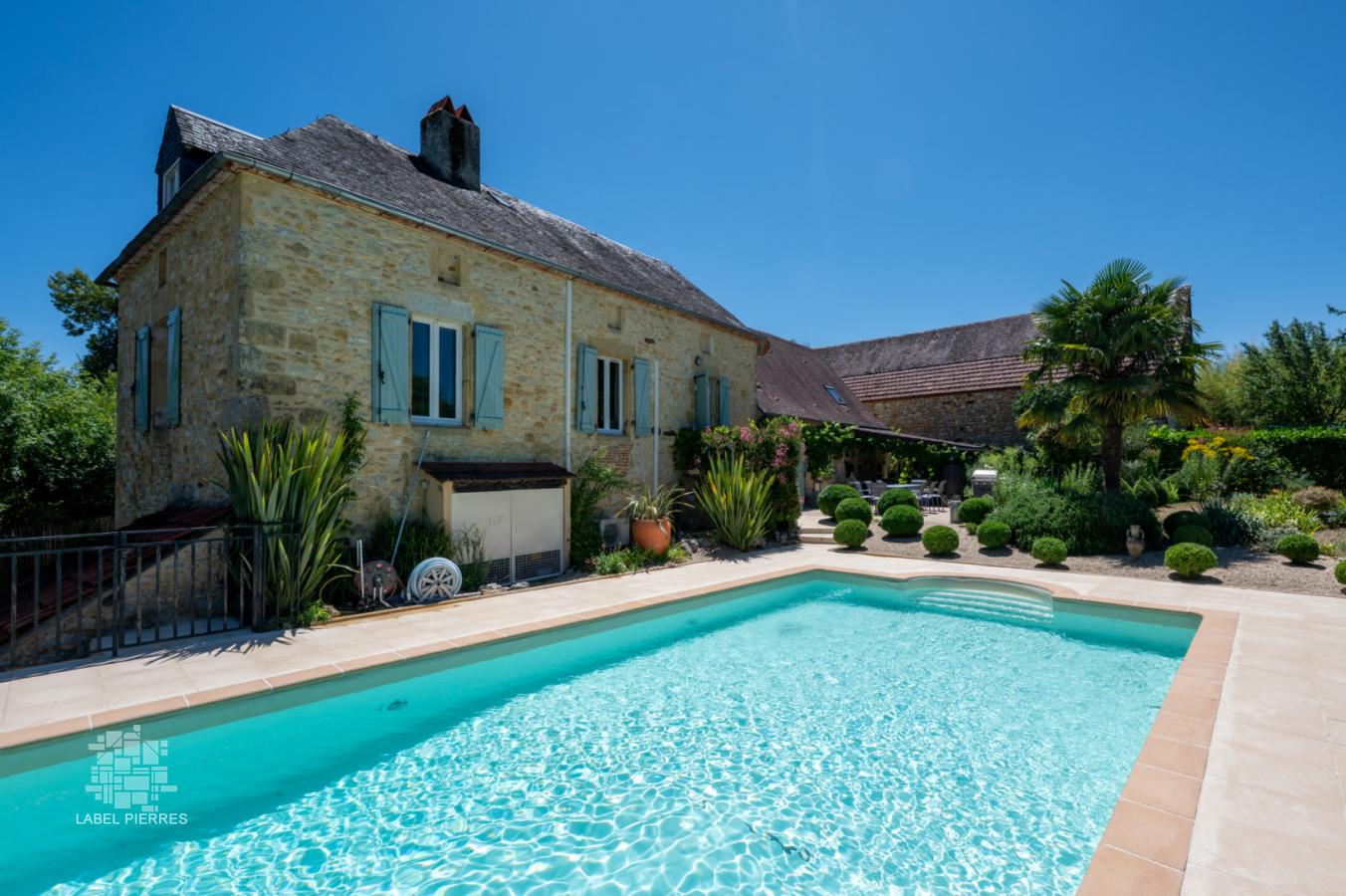 EXCLUSIVITE - Secteur Gourdon - En situation dominante avec vue dans un joli village typique, dotée d'un bel espace jardin arboré et fleuri de 1161 m² avec piscine, cette ravissante et spacieuse Demeure en pierre parfaitement entretenue s'agence sur 205 m² répartis en espaces accueillants et fonctionnels. Un lieu de vie serein et chaleureux où il fait bon vivre. Agréable terrasse couverte, puits. La Maison. RDJ. Belle cuisine avec espace repas de 36 m² - sortie jardin piscine, salle à manger de 24 m², terrasse avec partie couverte. 2 caves : 23 m² avec atelier et 30 m² avec chaufferie. RDC. Entrée par perron en pierre avec puits, séjour de 41 m² avec cheminée - poêle, chambre ou bureau de 12,7 m², salle d'eau wc rangement de 8,25 m². 1/2 niveau supérieur. Palier bureau de 11,3 m², chambre avec partie dressing de 30 m² et salle de bains - douche bains et wc. Etage. Palier de 4,5 m², 2 chambres de 14,4 m² et 26 m² avec salle de bains wc, wc avec lave-mains. Chauffage au fuel (au sol rdj et radiateurs en rdc et étage) et bois (poêle). Climatisation réversible partielle. Double vitrage, Fosse septique. Piscine de 10 x 5 au sel . Puits (citerne de récupération des eaux pluviales). Les informations sur les risques auxquels ce bien est exposé sont disponibles sur le site Géorisques www.georisques.gouv.fr