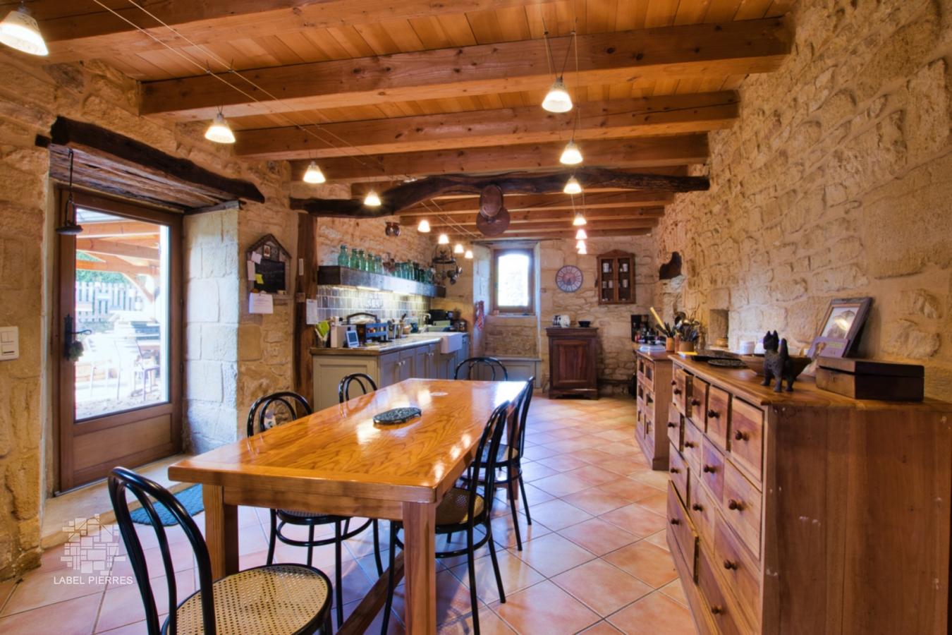 Idéalement située, à 10 minutes du centre de Sarlat, dans un petit village avec commerces et école accessibles à pied, agréable maison périgordine en pierre parfaitement rénovée de 202m2 comprenant une vaste entrée de 24m2, une chaufferie/ buanderie, un wc, grande cuisine de campagne de 27,5 m2, salon avec cantou et poele à granules de 37,5 m2, une chambre de 18,2 m2 avec salle d'eau ( aujourd'hui aménagée en grande buanderie), au 1er étage 4 chambres de 9,5 / 10,5/17 et 21,5 m2 ainsi qu'une salle d'eau avec wc; chambre en mezzanine. Le terrain de 1536 m2 est agrémenté d'une piscine couverte 11*5m , d'un Garage, d'un atelier et d'une serre Double vitrage, fosse septique, chauffage central gaz au sol + radiateurs Les informations sur les risques auxquels ce bien est exposé sont disponibles sur le site Géorisques: www.georisques.gouv.fr