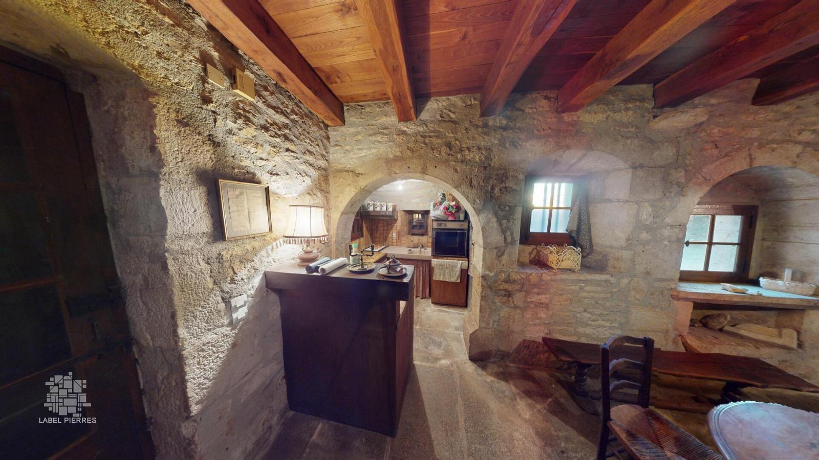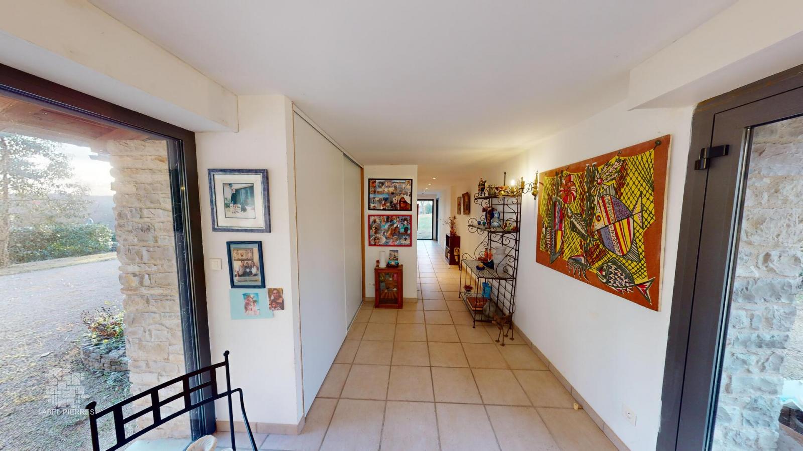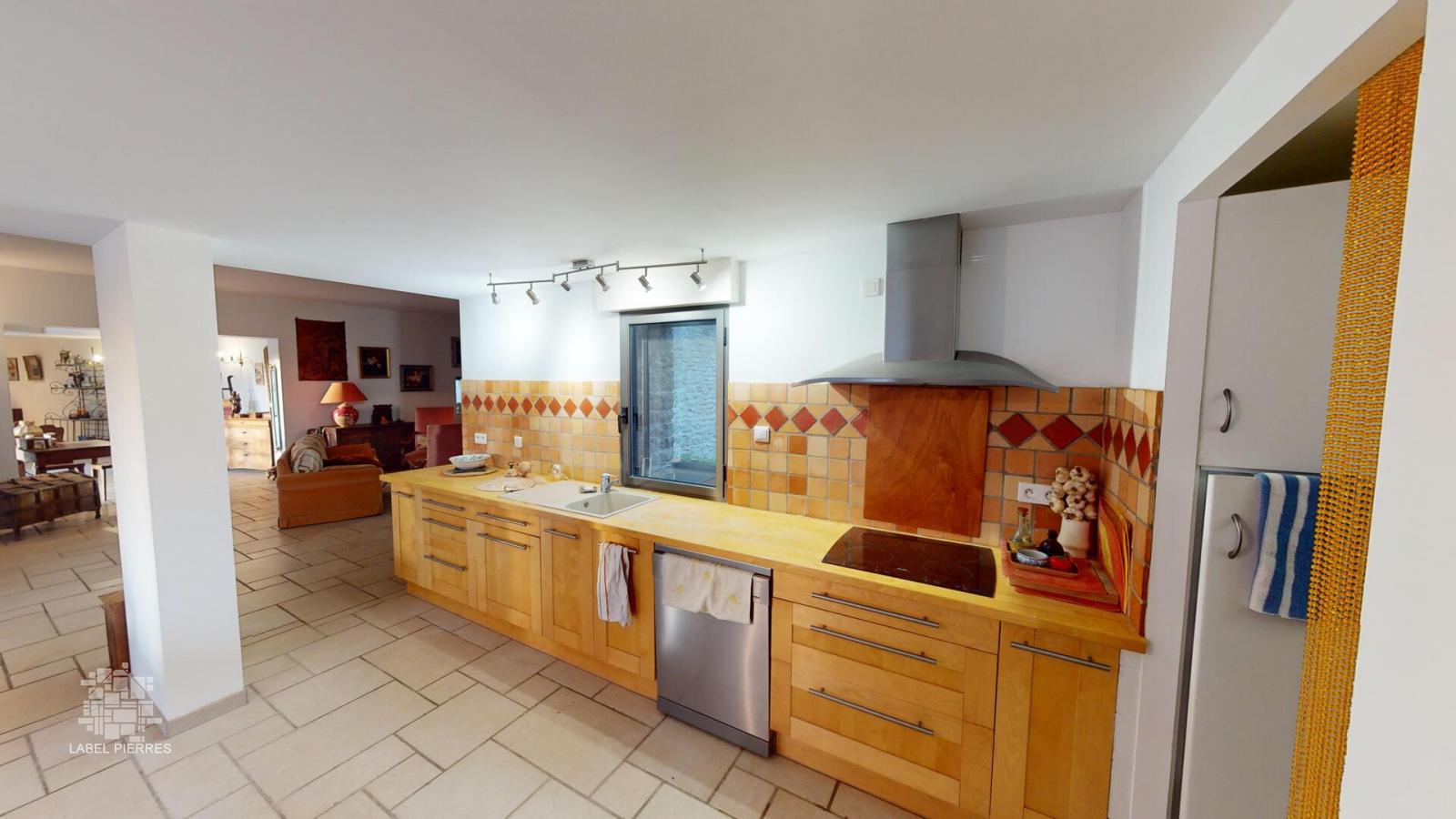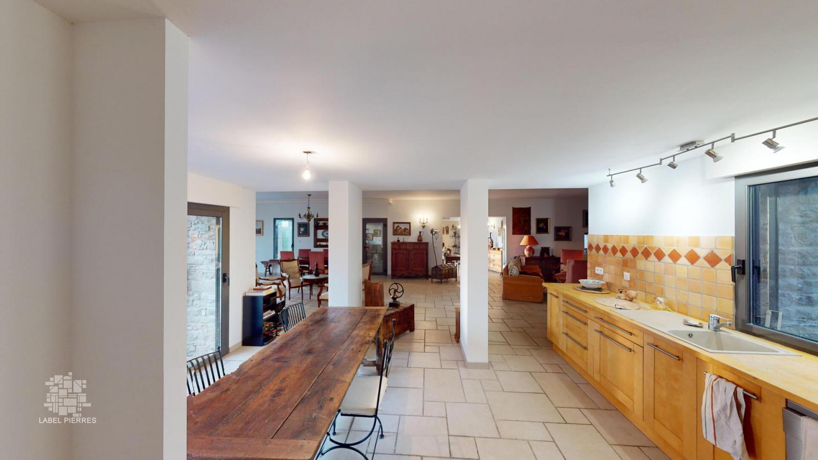Ensemble immobilier composé d'une maison ancienne en pierres (XVIIIe) et de deux constructions récentes (2007) formant extensions de la propriété d'origine. Les trois bâtiments sont reliés entre eux grâce à l'existence de deux galeries permettant le passage couvert de l'un à l'autre des bâtiments. En rez de jardin : Pièce à vivre (26.55 M²) avec cantou et souillarde, sol pierre de lave, murs pierres apparentes jointoyées, poutres apparentes au plafond. Coin cuisine organisé dans souillarde (2.8 M²). Accès étage par escalier pierres. Petit salon (14.45 M²) sol terre cuite, murs pierres apparentes, poutres apparentes au plafond, cave et chaufferie Partie sas formant lien entre la maison ancienne et la première extension : Vestiaire et hall d'entrée, Cuisine aménagée et équipée , cellier, coin repas et petit salon , salon (79 M²) avec cheminée monumentale, galerie (18 M²) avec baie vitrée donnant sur le jardin, 2 chambres une salle d'eau équipée d'une douche « à l'italienne », d'un WC et d'une vasque, 1er étage : Pièce palière voûtée (6.9 M²), 2 chambres dont une avec salle de bains « en suite » chambre 2 : (11.3 M²) , escalier pierre redescendant dans pièce à vivre et donnant accès, dans sa partie haute, à terrasse suspendue et en partie couverte. Terrain Paysagé, bordé de murets en pierres sèches, allées castinées. Commerces à10 min Les informations sur les risques auxquels ce bien est exposé sont disponibles sur le site Géorisques: www.georisques.gouv.fr