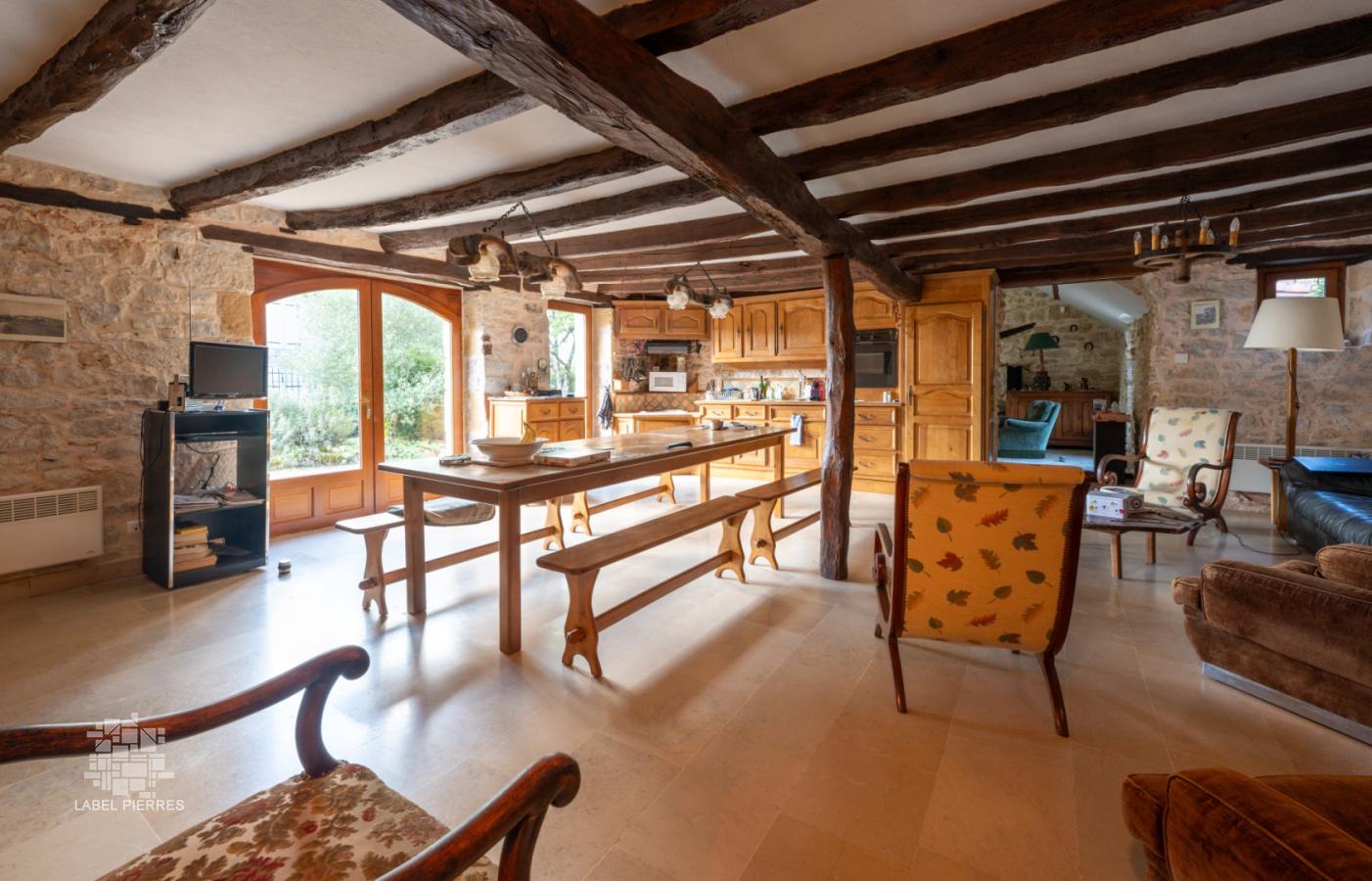 Secteur Gourdon- Au sein d'un beau village typique, bien implantée sur un jardin avec vue de 872 m² en partie clos de murets en pierre, cette spacieuse Demeure en pierre vous permettra de profiter de 217 m² habitables répartis en volumes généreux et fonctionnels - vaste séjour, 6 chambres. Agréable espace piscine couvert attenant avec accès jardin, garage. La Maison. RDC. Séjour incluant cuisine de 45 m², salon de 25,7 m², cellier de 2 m², dégagement de 2,84 m², chambre de 19,5 m², salle de bains de 8,32 m², wc lave-mains de 1,5 m². Etage. 3 chambres de 14,3 m², 21,7 m², 22,2 m², couloir de 11,9 m², dressing de 3,24 m², salle d'eau de 8,3 m², wc de 1,32 m². Niveau + : Mezzanine chambre : 12 m² et espace salle de jeux ou chambre de 25 m² Chauffage électrique, double vitrage, tout-à-l'égout. Annexe de 30 m² aménagée avec piscine couverte - nage à contre-courant et espace aménagé en niveau de 12 m² en surface nette Garage de 29,6 m² et local technique piscine Les informations sur les risques auxquels ce bien est exposé sont disponibles sur le site Géorisques www.georisques.gouv.fr