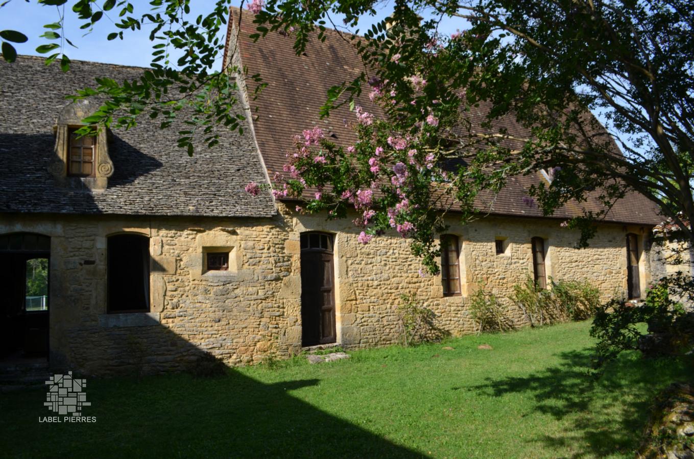 En Périgord Noir, à l'extrémité d'un petit hameau typique, entre Montignac-Lascaux et Sarlat, cette propriété de caractère se situe en hauteur et au calme. Elle n'est pas isolée et est exposée au sud. Le terrain d'environ 5000 m² est plat et paysagé, on y trouve donc des zones ombragées en façade, très agréables. Sur l'arrière de la maison, un beau court de tennis en résine séduira les amateurs. La maison est couverte en lauzes et en tuiles plates. Elle développe environ 230 m² habitable sur deux niveaux. Bien qu'équipée d'un chauffage central, cette maison demeure dans son jus et en fonction de l'usage que lui donneront ses prochains propriétaires, des travaux de modernisation seront à réaliser ou pourront l'être. Une entrée centrale dessert d'un côté le séjour avec cheminée, potager, évier pierre et sol en pisé, une grande chambre avec cheminée à mi-niveau,une salle de bains, une petite cuisine, et un petit salon. A l'étage, le palier conduit à deux chambres en enfilade, et à une grande chambre palière/mezzanine. Grenier, cave et petite remise. Possibilité de construire une piscine. Les informations sur les risques auxquels ce bien est exposé sont disponibles sur le site Géorisques: www.georisques.gouv.fr
