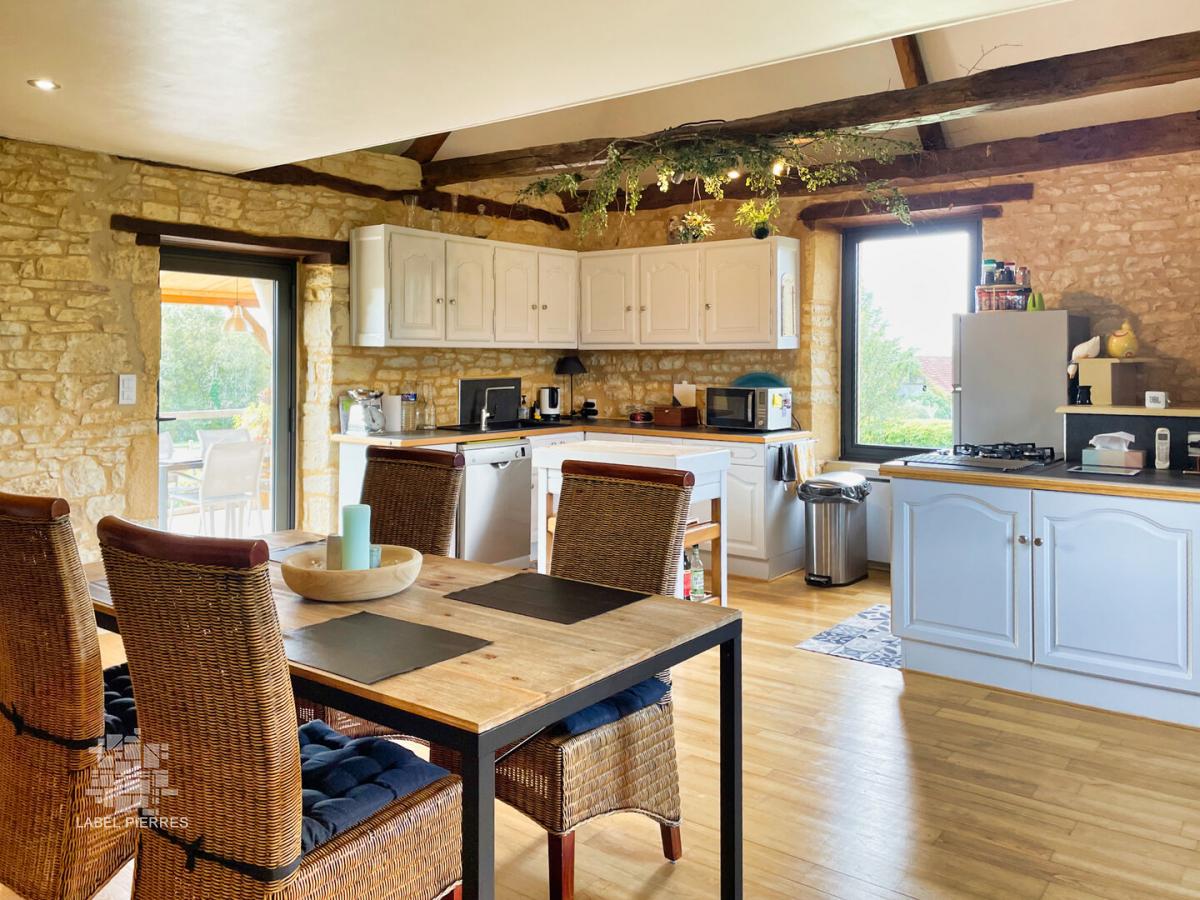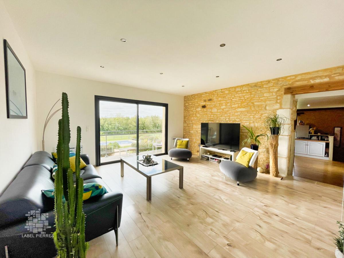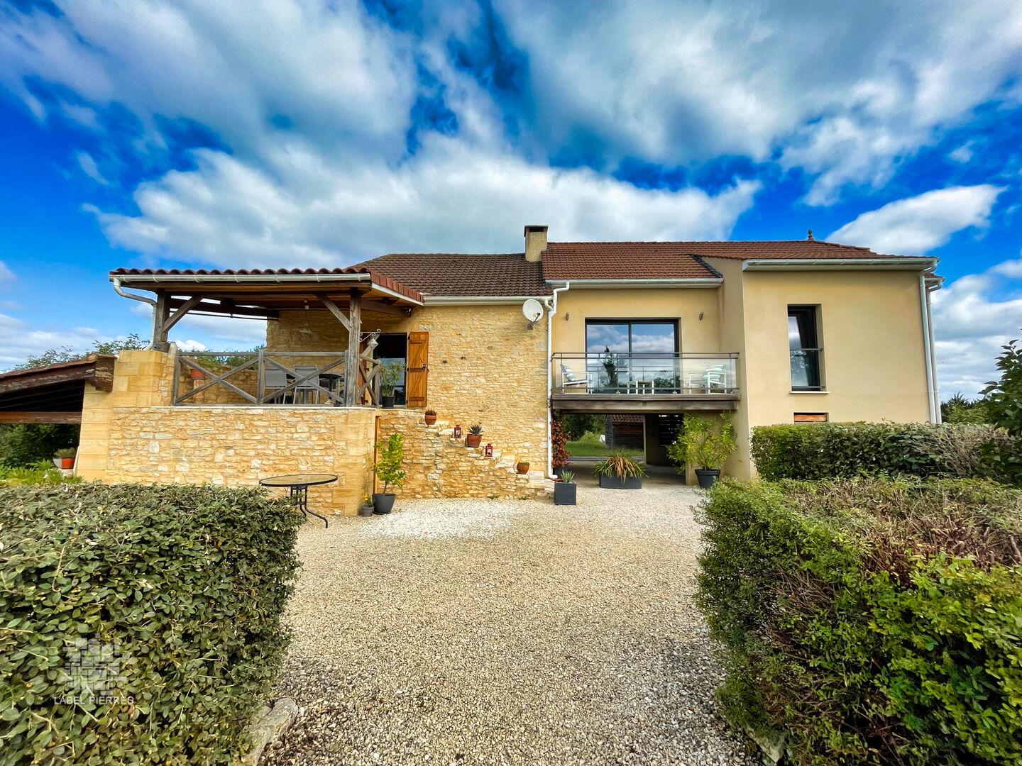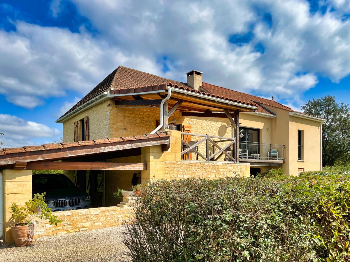 Située entre SARLAT et GOURDON( 6 km), au calme, sans être isolée, cette périgourdine saura vous séduire par ses prestations de qualité et l'originalité de sa conception , entre modernité et tradition. Nous vous invitons à poser vos valises dans cette très belle et lumineuse maison en pierre avec extension contemporaine, développant un total de 123m2 habitables et érigée sur un terrain de 4670m2 plat et arboré (dont une partie constructible de 2034m2). C'est par une terrasse couverte que vous entrez pour découvrir une pièce de vie avec cuisine de 40 m2 avec cantou et poêle à bois , un salon de 26 m2 éclairé par une baie vitrée et terrasse offrant une vue magnifique sur le jardin et la piscine , une chambre ensuite avec salle d'eau et dressing , wc séparés, chambre en mezzanine; En rez de jardin un palier dessert 2 chambres, une salle d'eau , des wc séparés. Cette partie peut pourquoi pas être dédiée à l'activité de chambres d'hôtes Le terrain est agrémenté d'une belle piscine 8*4m avec liner neuf, d'un chalet en bois, d'un car port et d'un espace dédié au garage des véhicules. Ce dernier pouvant tout à fait être aménagé différemment et donne un potentiel d'agrandissement à la maison. Double vitrage, fosse septique, chauffage électrique Les informations sur les risques auxquels ce bien est exposé sont disponibles sur le site Géorisques: www.georisques.gouv.fr
