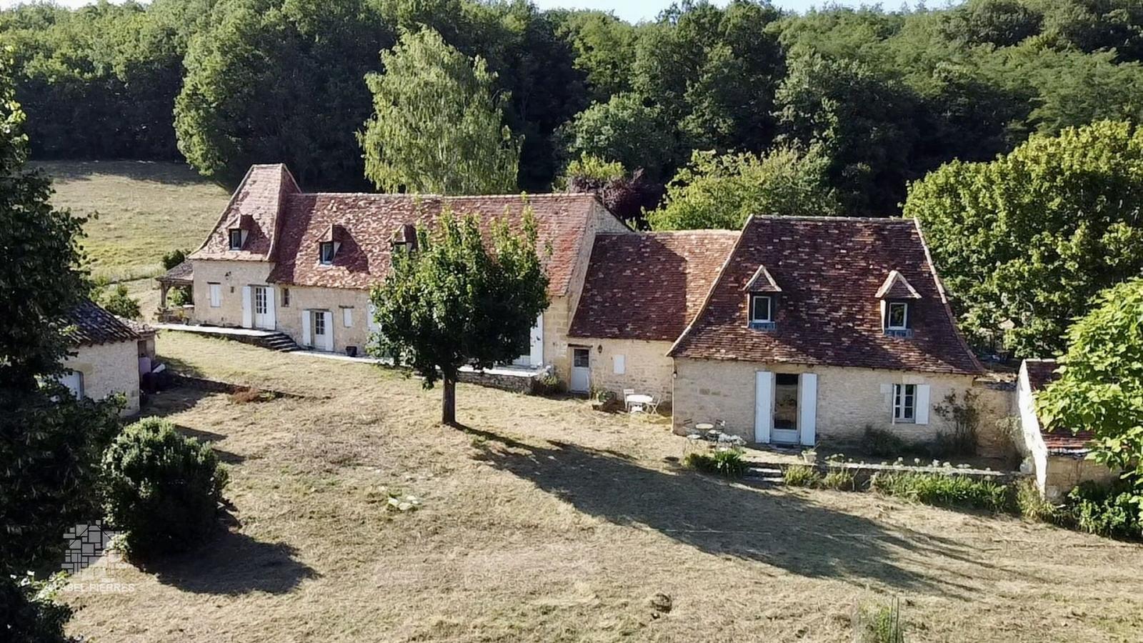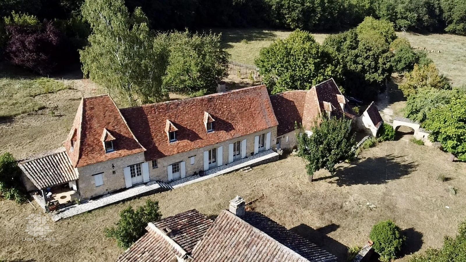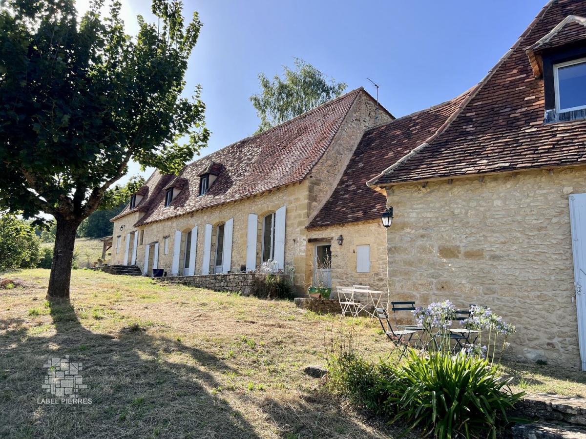 Dans un cadre privilégié sans nuisance ni voisinage, on accède à cette propriété de charme par un petit chemin privé. De style longère, la maison offre 270m² habitables. On y trouve quatre chambres - dont une suite avec entrée indépendante - une grande cuisine et un magnifique salon au plafond cathédrale. Toutes les pièces sont orientées au SUD vers la vue dégagée sur la vallée de la Dordogne. Terrain de 20 hectares (prairie et bois) avec également un ancien fournil, une grange, un atelier, et une piscine à débordement. - Bon état général - Chauffage central au fuel. Poêles alsaciens. Double vitrage en grande partie. Possibilité de jouissance de 10 hectares boisés supplémentaires. Les informations sur les risques auxquels ce bien est exposé sont disponibles sur le site Géorisques: www.georisques.gouv.fr