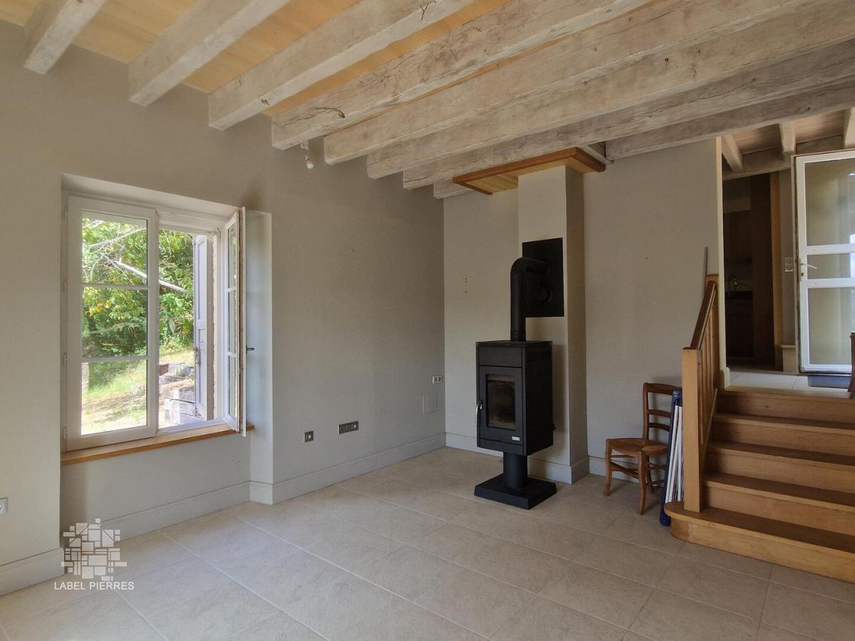 • Salon 19m² avec poêle à bois et vue, entrée avec 4 marches