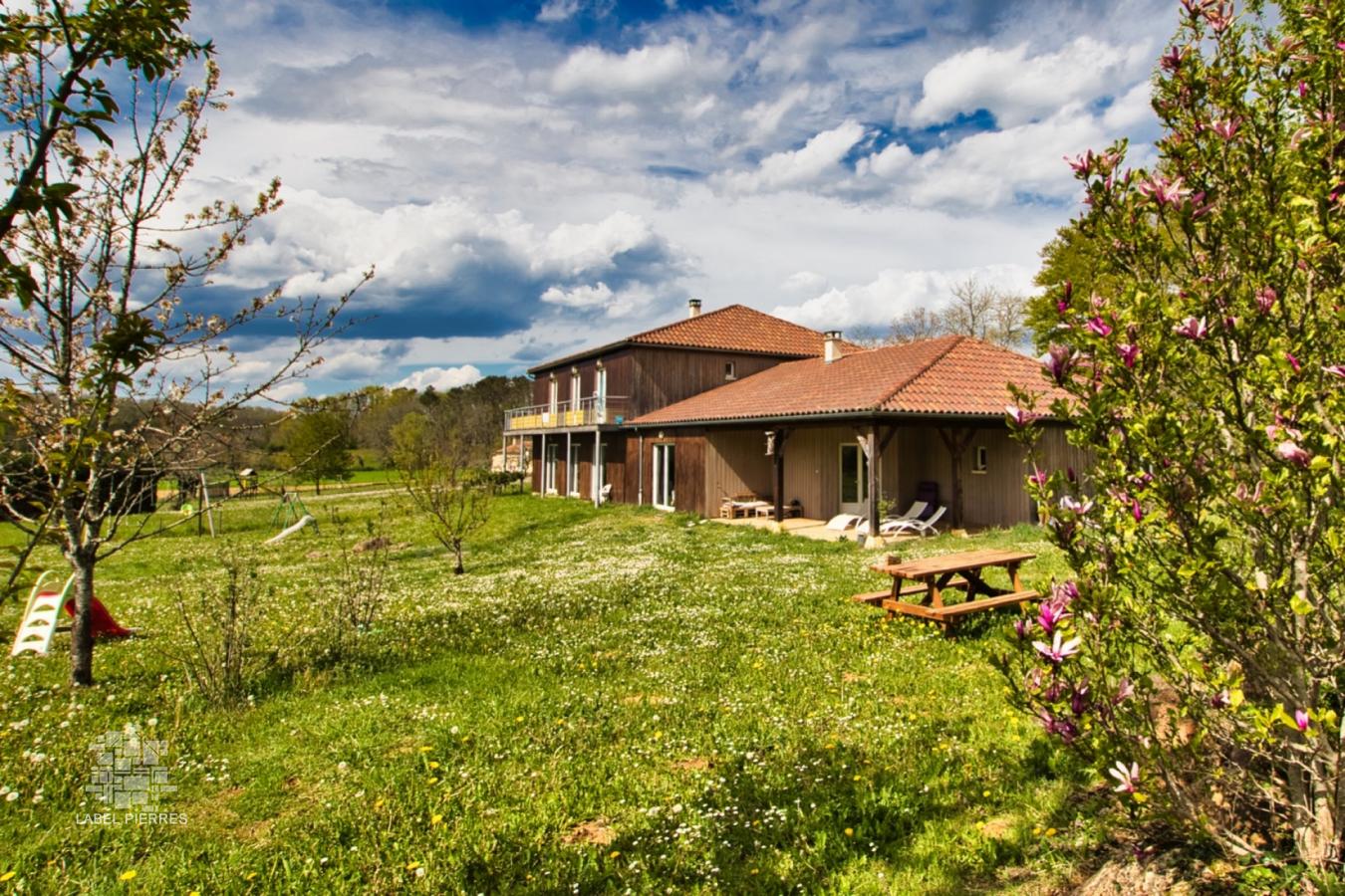 Secteur Cénac, non loin des commerces & école, grande maison en ossature bois édifiée en 2011 sur un terrain de 2906 m2. Cette maison sera idéale pour une grande famille grâce à ses volumes ( 375 m2 habitables) et le nombre de chambres ( 11 chambres). Elle distribue sur 375 m2 habitables une entrée, un wc avec lave-mains, un salon/ salle à manger de 70 m2 avec poele à bois, une cuisine de 30 m2 aménagée et équipée avec cuisinière à bois et piano de cuisson, 4 chambres en rez de chaussée dont une suite avec salle d'eau et dressing, une grande buanderie, un cellier; à l'étage 6 chambres avec un accès chacune sur le balcon, un bureau, 2 salles d'eau avec wc . Le jardin de 2906 m2 est piscinable Double vitrage, chauffage électrique et au bois, fosse septique Les informations sur les risques auxquels ce bien est exposé sont disponibles sur le site Géorisques: www.georisques.gouv.fr