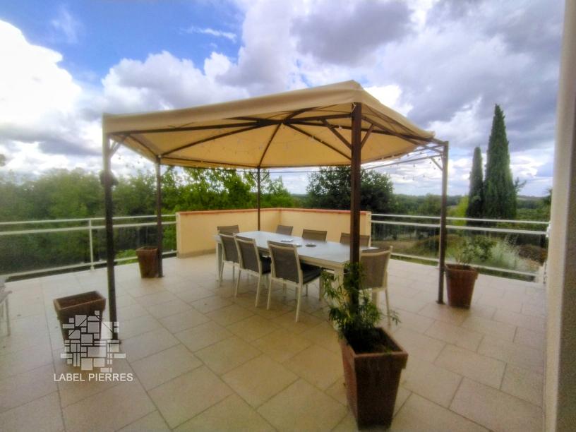 Maison contemporaine construite en 2005 développant 234 m² de surface habitable, implantée sur un parc paysager entièrement clos de 5412 m². Des espaces intérieurs, avec 5 chambres, vaste pièce à vivre et nombreux sanitaires elle offre un espace vie extérieure avec piscine, pool house avec cuisine équipée et sanitaires, et de grandes terrasses Vue dégagée , calme et confort sont les atouts de cette belle propriété à 15mn au sud de Cahors. Chauffage pompe à chaleur, clim réversible. Equipée de panneaux photovoltaïques Les informations sur les risques auxquels ce bien est exposé sont disponibles sur le site Géorisques www.georisques.gouv.fr