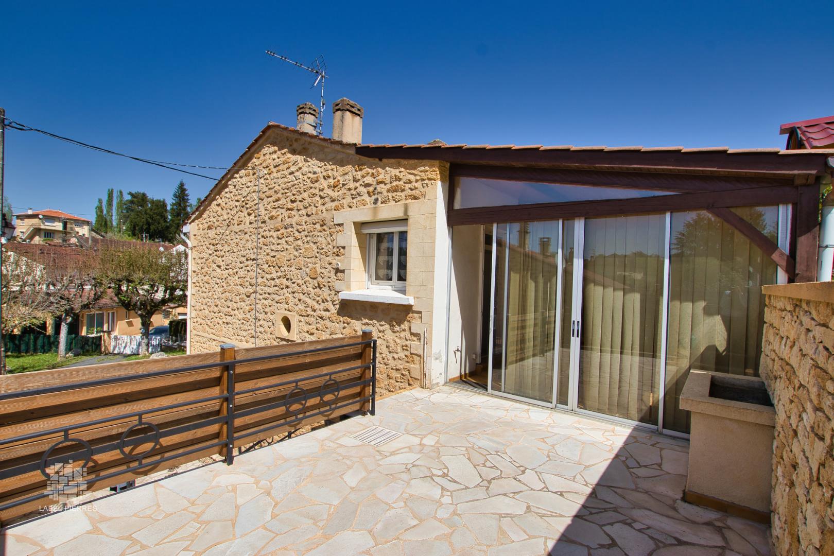 A seulement quelques minutes à pieds de l'hyper centre de Sarlat, cette maison a été récemment rénovée. Le rez-de-chaussée se compose d'une entrée, wc, deux chambres avec point d'eau, une cave Au niveau principal, un salon/ salle à manger de 30 m2, une salle de bains avec wc, une chambre, une cuisine avec accès sur la grande véranda de 28m2. De celle-ci, vous profiterez soit d'une jolie terrasse carrelée, soit du jardin ! Tout à l'égout - CC Gaz de Ville avec chaudière récente - Double vitrage - Isolation avril 2023 Les informations sur les risques auxquels ce bien est exposé sont disponibles sur le site Géorisques: www.georisques.gouv.fr
