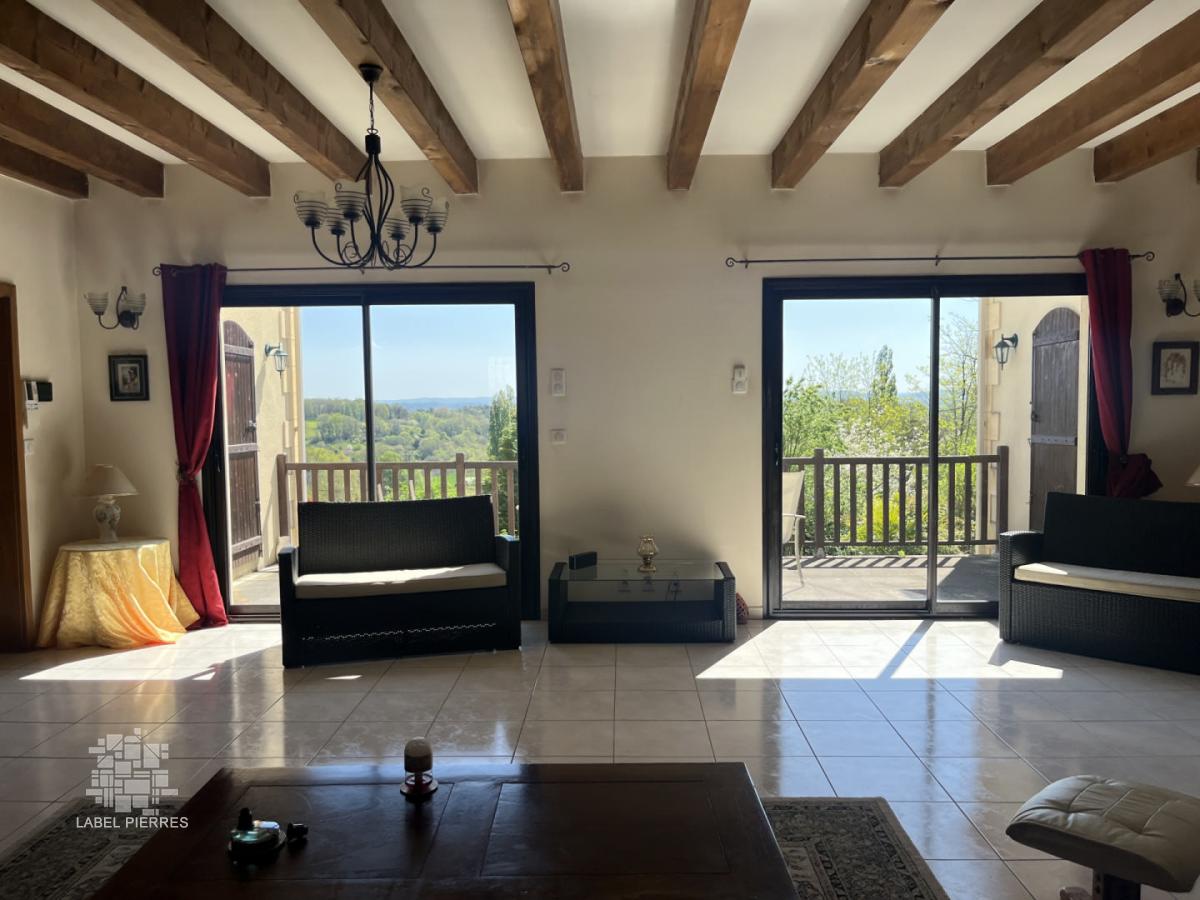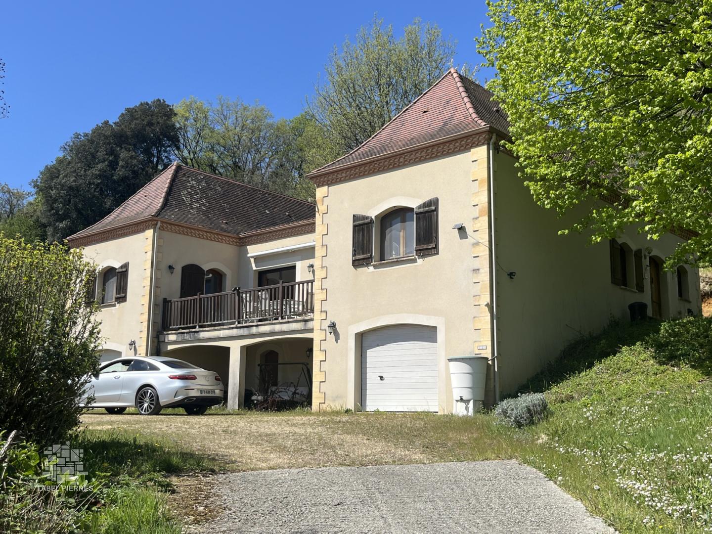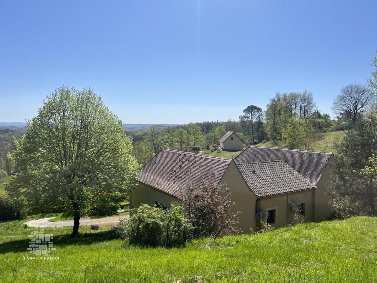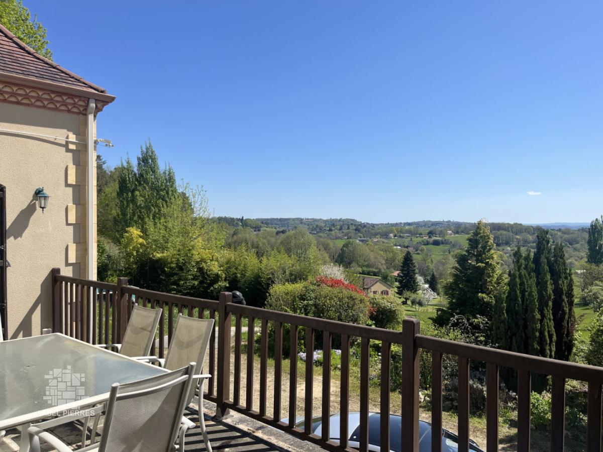 Sarlat. Périgord Noir. Maison récente d'environ 170 m² habitables plus 2 garages sur 2500 m2 de terrain. Environnement calme. Maison lumineuse avec grande pièce de vie et chambres, terrasse et vue.