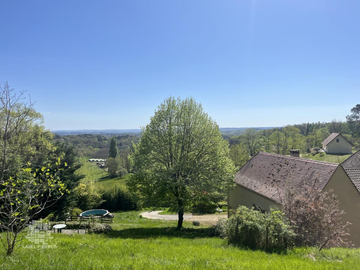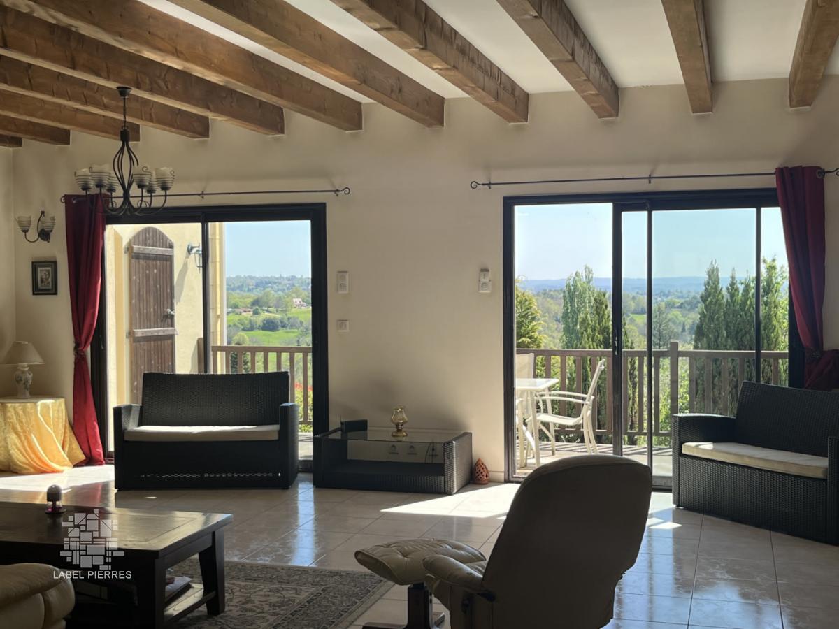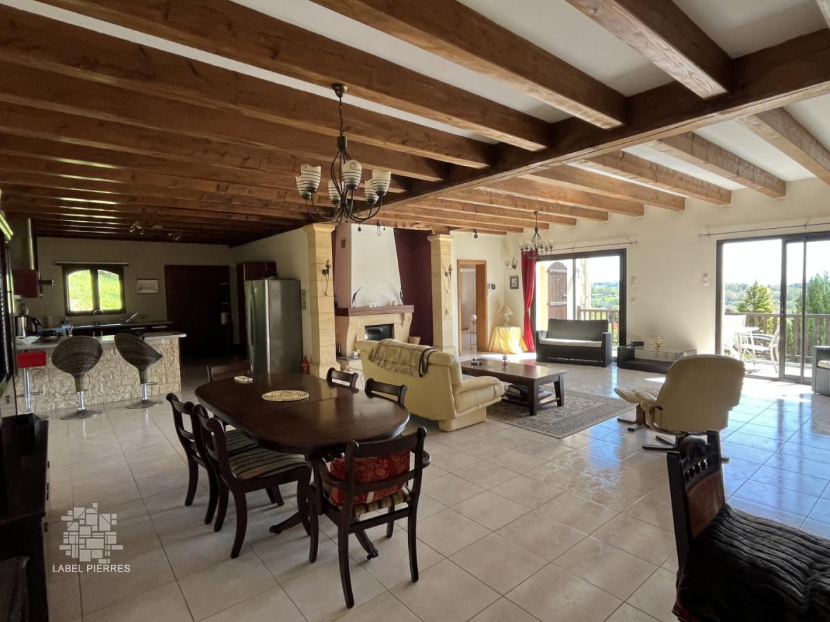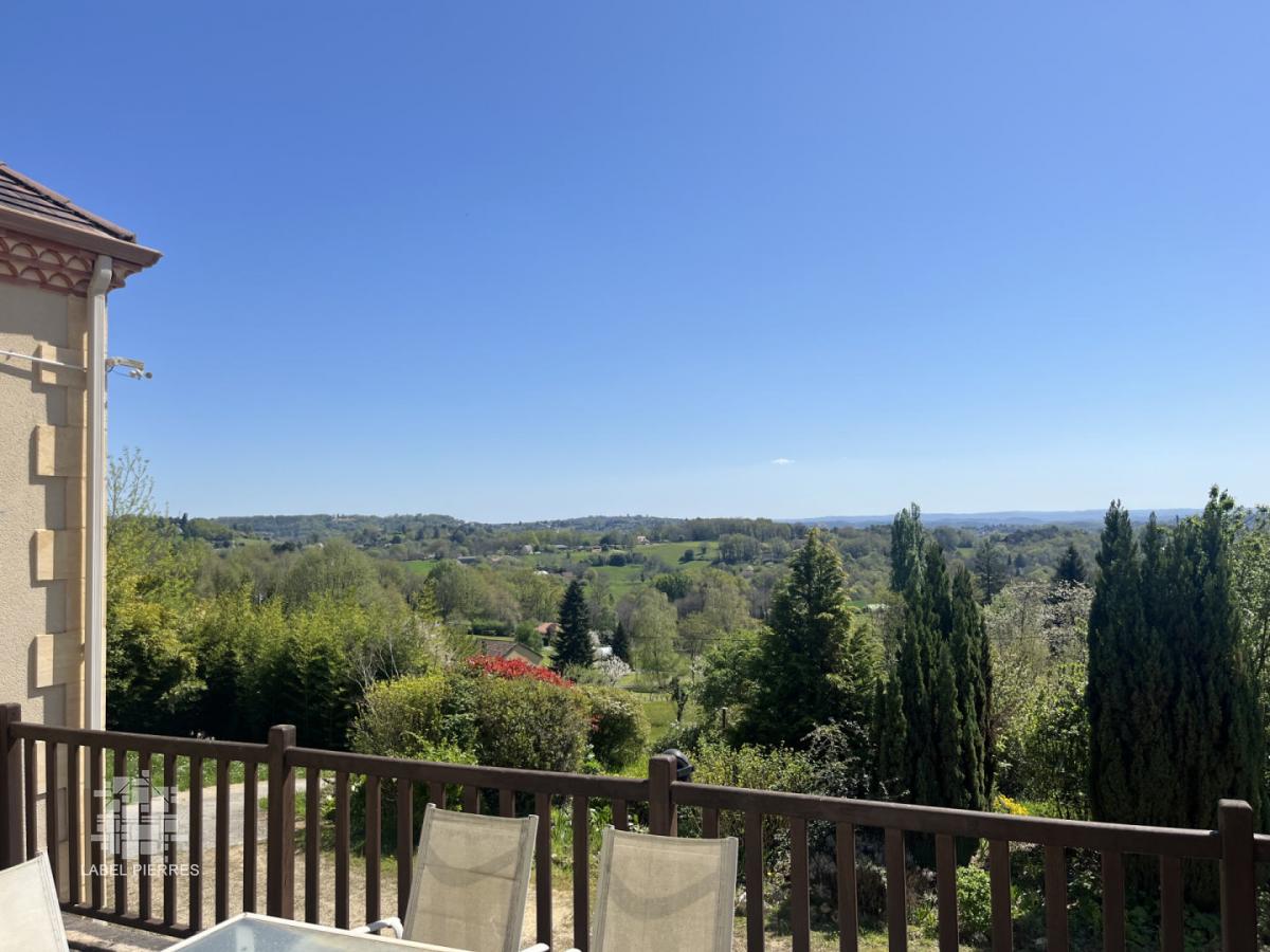 Sarlat. Périgord Noir. Maison récente d'environ 170 m² habitables plus 2 garages sur 2500 m2 de terrain. Environnement calme. Maison lumineuse avec grande pièce de vie et chambres, terrasse et vue.
