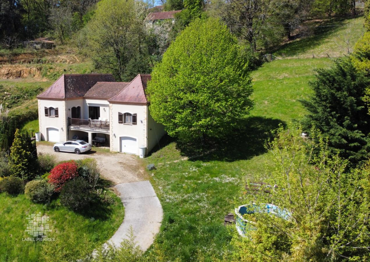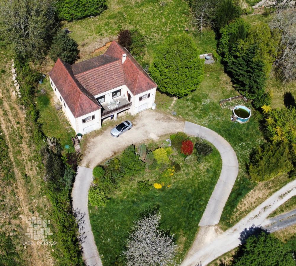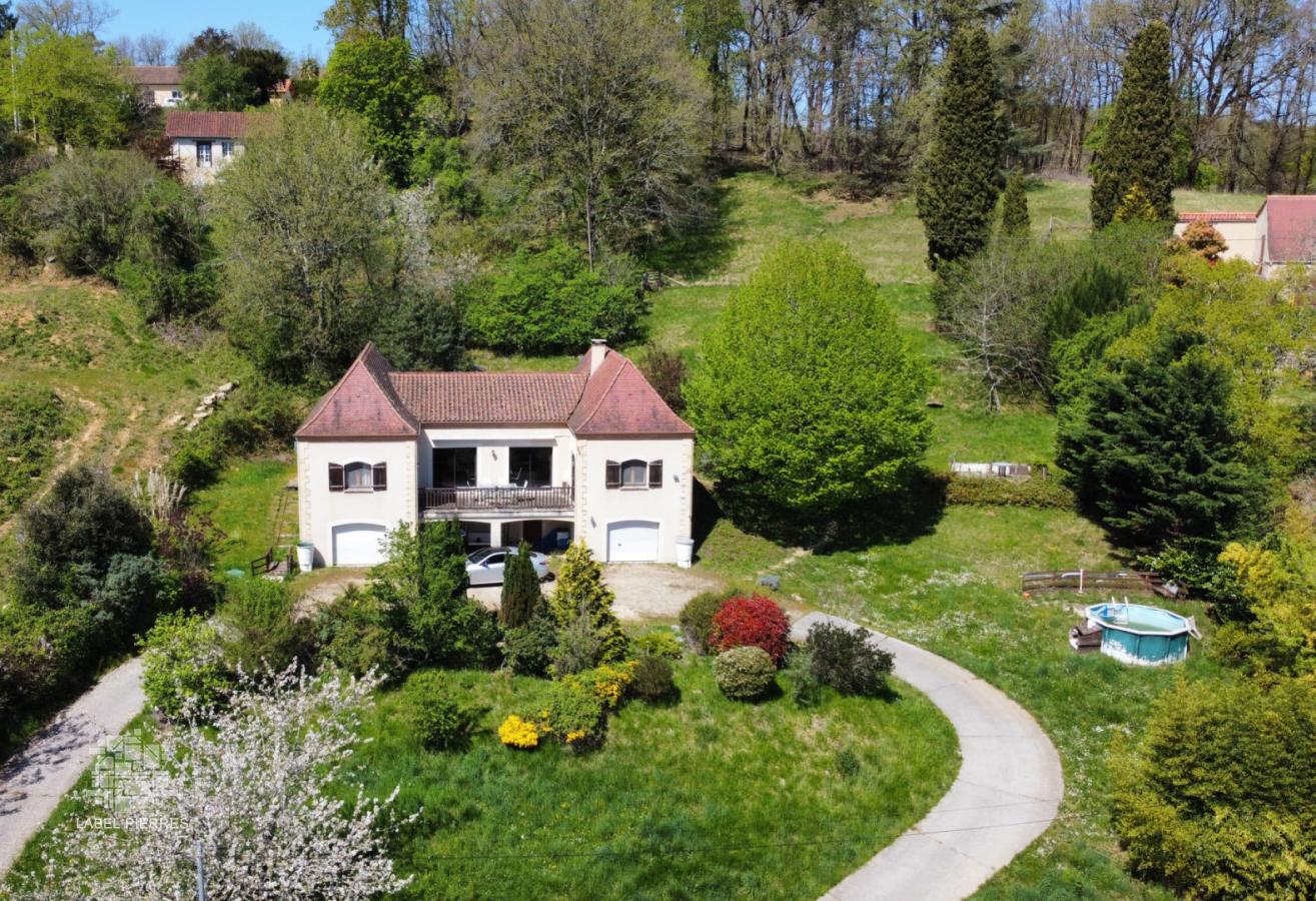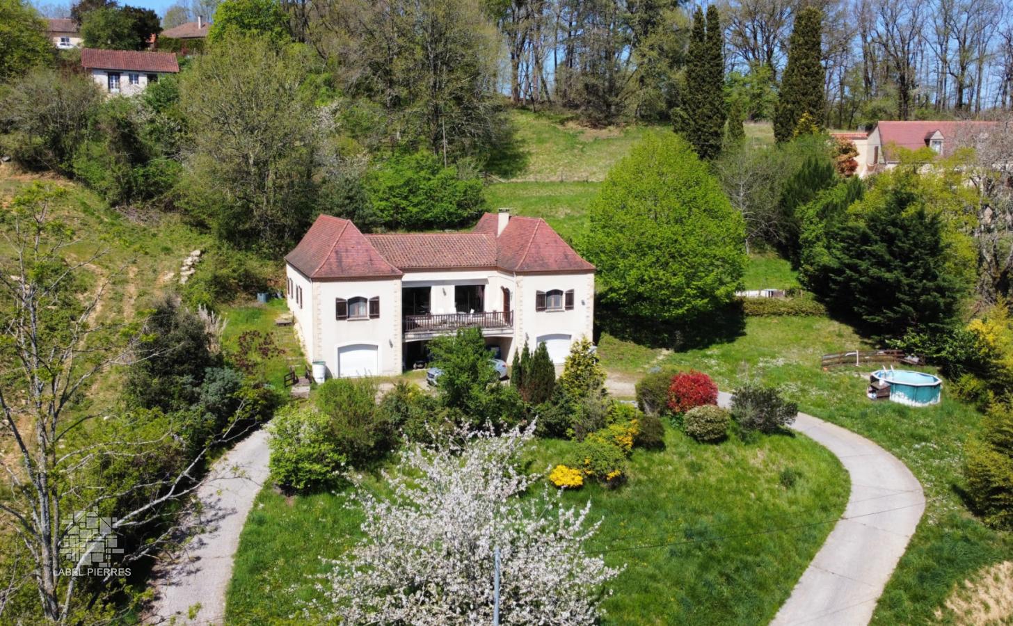 Sarlat. Périgord Noir. Maison récente d'environ 170 m² habitables plus 2 garages sur 2500 m2 de terrain. Environnement calme. Maison lumineuse avec grande pièce de vie et chambres, terrasse et vue.