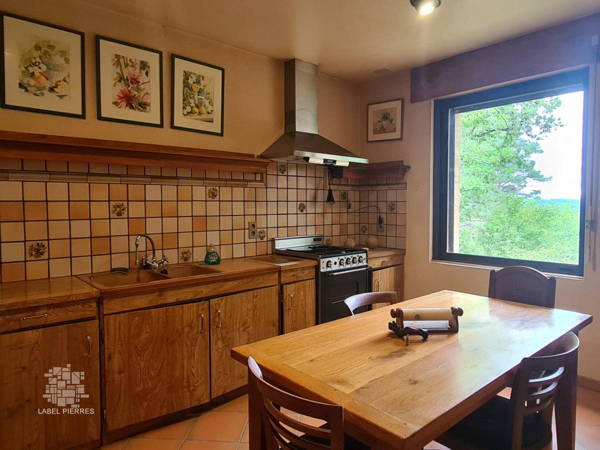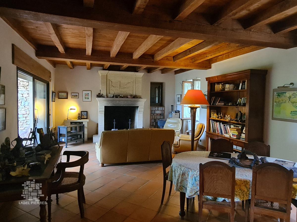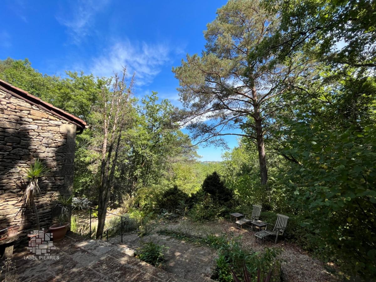 Construite en 1985 en vielles pierres, cette maison de caractère est située sur hauteur dans un magnifique sous-bois (en zone naturelle). Elle offre environ 130m² habitables avec possibilité d'agrandissement grâce au garage attenant. Une belle pièce à vivre avec cheminée donnant sur une terrasse, une cuisine indépendante, et une chambre avec dressing permettent de vivre de plain-pied. Vous pourrez profitez d'une autre chambre nichée dans la tour et d'un bureau en rez-de-jardin (facilement aménageable en suite). Une dépendance de 25m² agrémente cette propriété. Très jolie maçonnerie et bon état général. Les informations sur les risques auxquels ce bien est exposé sont disponibles sur le site Géorisques: www.georisques.gouv.fr