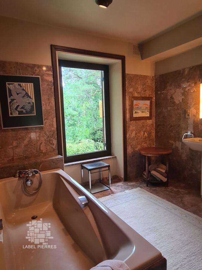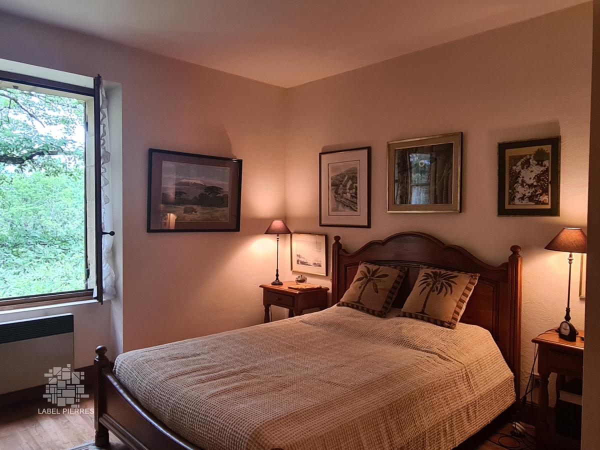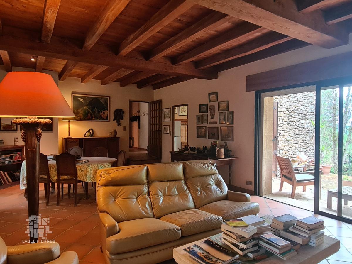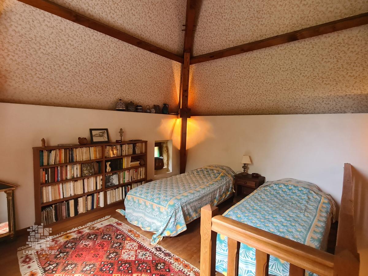 Construite en 1985 en vielles pierres, cette maison de caractère est située sur hauteur dans un magnifique sous-bois (en zone naturelle). Elle offre environ 130m² habitables avec possibilité d'agrandissement grâce au garage attenant. Une belle pièce à vivre avec cheminée donnant sur une terrasse, une cuisine indépendante, et une chambre avec dressing permettent de vivre de plain-pied. Vous pourrez profitez d'une autre chambre nichée dans la tour et d'un bureau en rez-de-jardin (facilement aménageable en suite). Une dépendance de 25m² agrémente cette propriété. Très jolie maçonnerie et bon état général. Les informations sur les risques auxquels ce bien est exposé sont disponibles sur le site Géorisques: www.georisques.gouv.fr