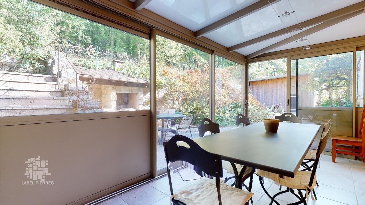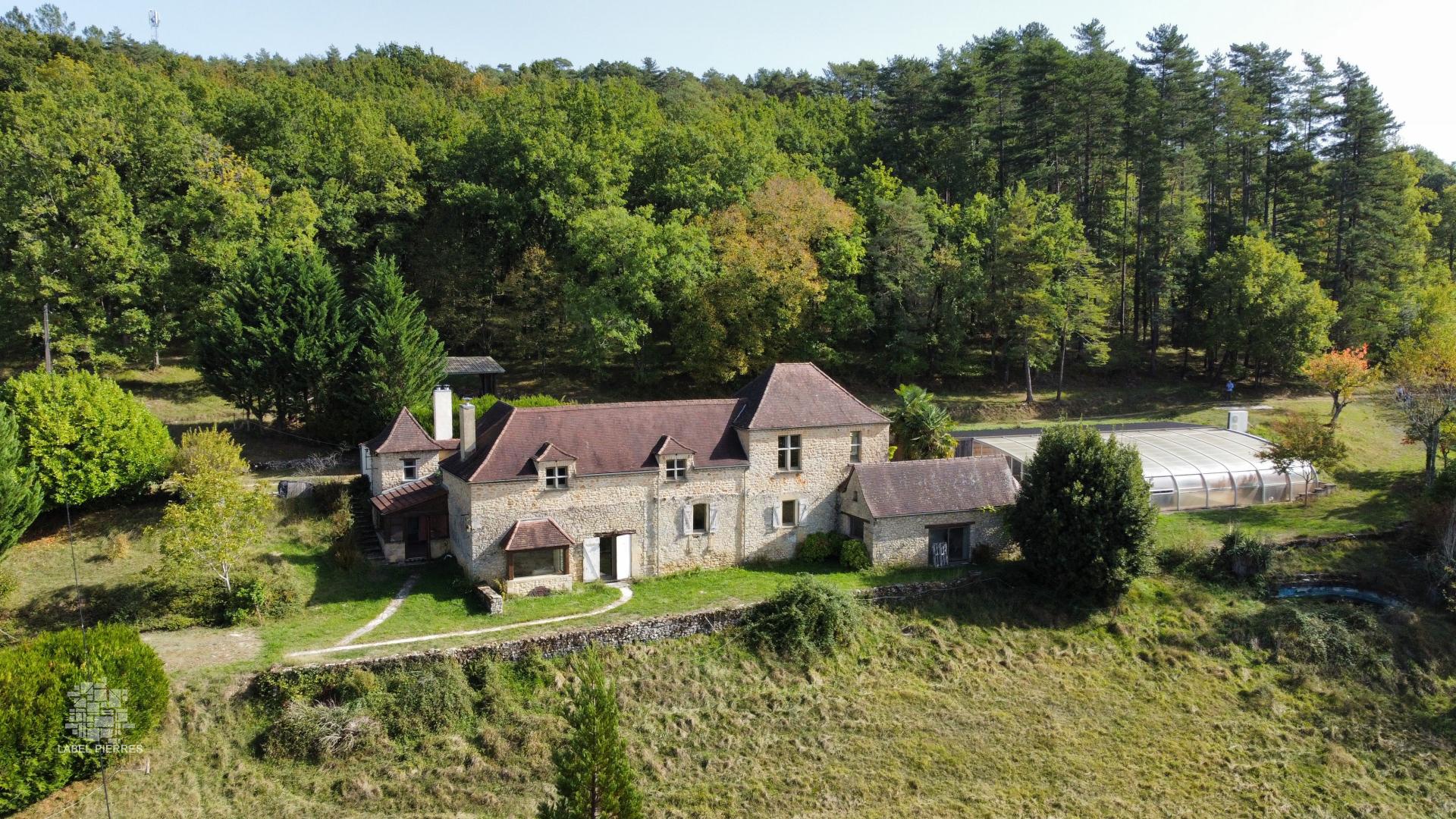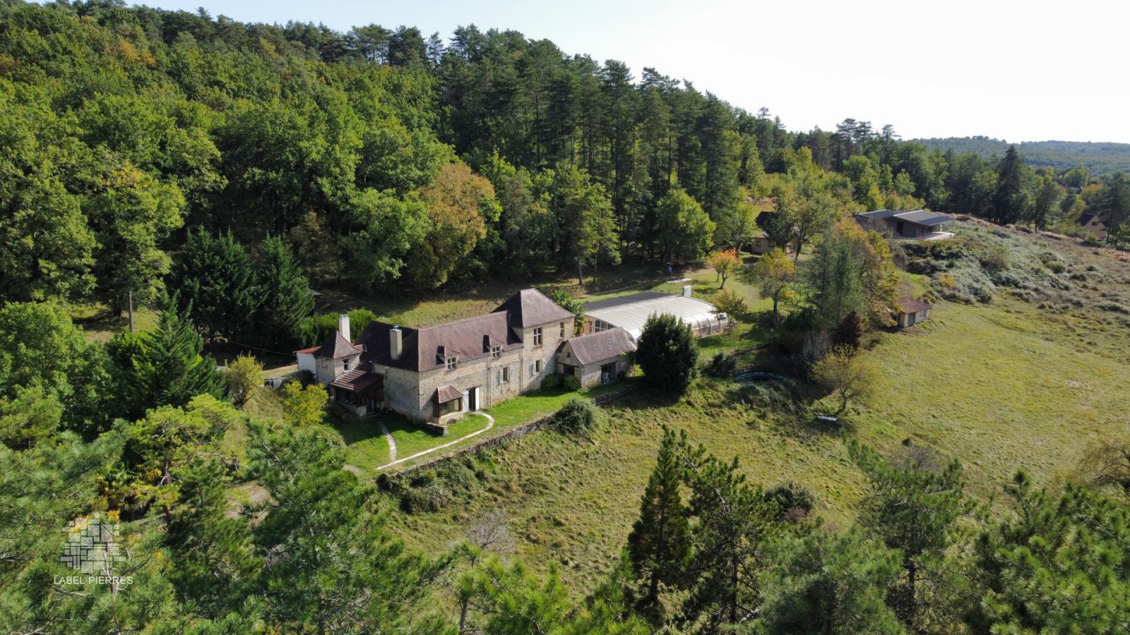 Secteur LES EYZIES, dans un environnement arboré et sans voisinage proche, cette propriété est située en position dominante avec vue dégagée. Elle est implantée sur un terrain de 12 hectares avec piscine couverte et pool house, deux gîtes et hangar à chevaux. Il s'agit d'une ancienne dépendance d'un château. La maison principale d'environ 210m2 habitables se compose en rez-de-chaussée d'une entrée lumineuse, deux buanderies dont une avec wc, une cuisine de 16 m2, une véranda, un séjour de 40 m2 avec insert, deux chambres en enfilades avec salle d'eau/wc, un dégagement pouvant faire office de seconde entrée ; En rez-de-jardin, un bureau avec salle d'eau/wc. À l'étage, se trouve deux grandes chambres avec chacune une salle d'eau/wc. Ancien logement de gardin d'environ 50m2 habitables est attenant à la maison, avec une cuisine, une chambre et salle d'eau, wc. Le second gîte d'environ 48m2 habitables se compose d'un séjour avec cuisine ouverte, une chambre ainsi qu'une salle d'eau et wc. En dépendances, deux hangars avec boxes à chevaux ; ainsi que deux ateliers. Une piscine couverte de 5x12 avec pool house, une cuisine d'été, un jacuzzi et un sauna, une salle d'eau avec wc et trois pièces supplémentaires. Chauffage central fuel, Fosse septique - double vitrage - source Des travaux de rénovation sont à prévoir Les informations sur les risques auxquels ce bien est exposé sont disponibles sur le site Géorisques: www.georisques.gouv.fr