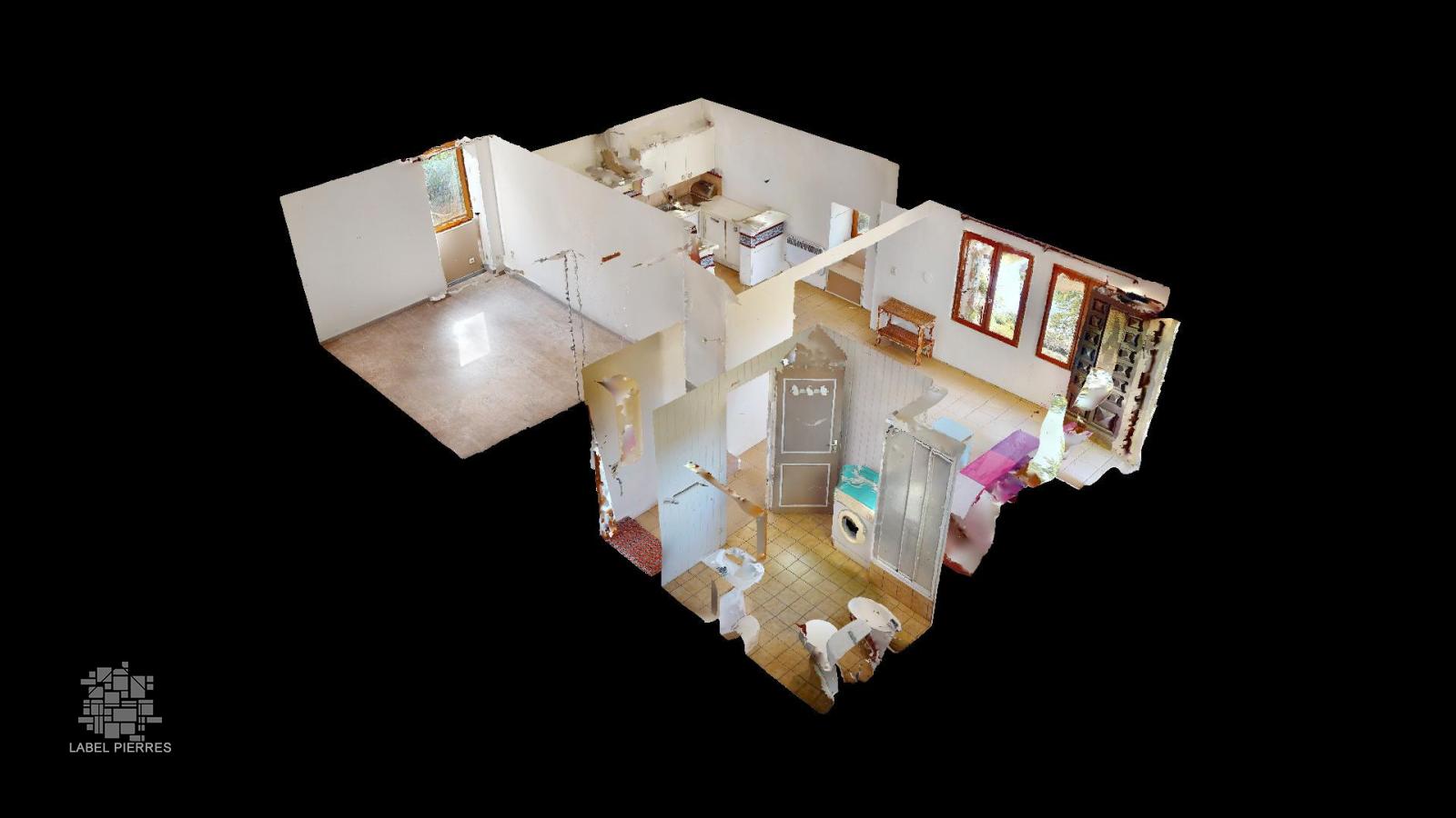 • Gîte d'environ 48m2 habitables avec séjour, cuisine ouverte de 28m2, une chambre avec placard de 12,3 m2 et une salle d'eau avec wc de 5,7m2
